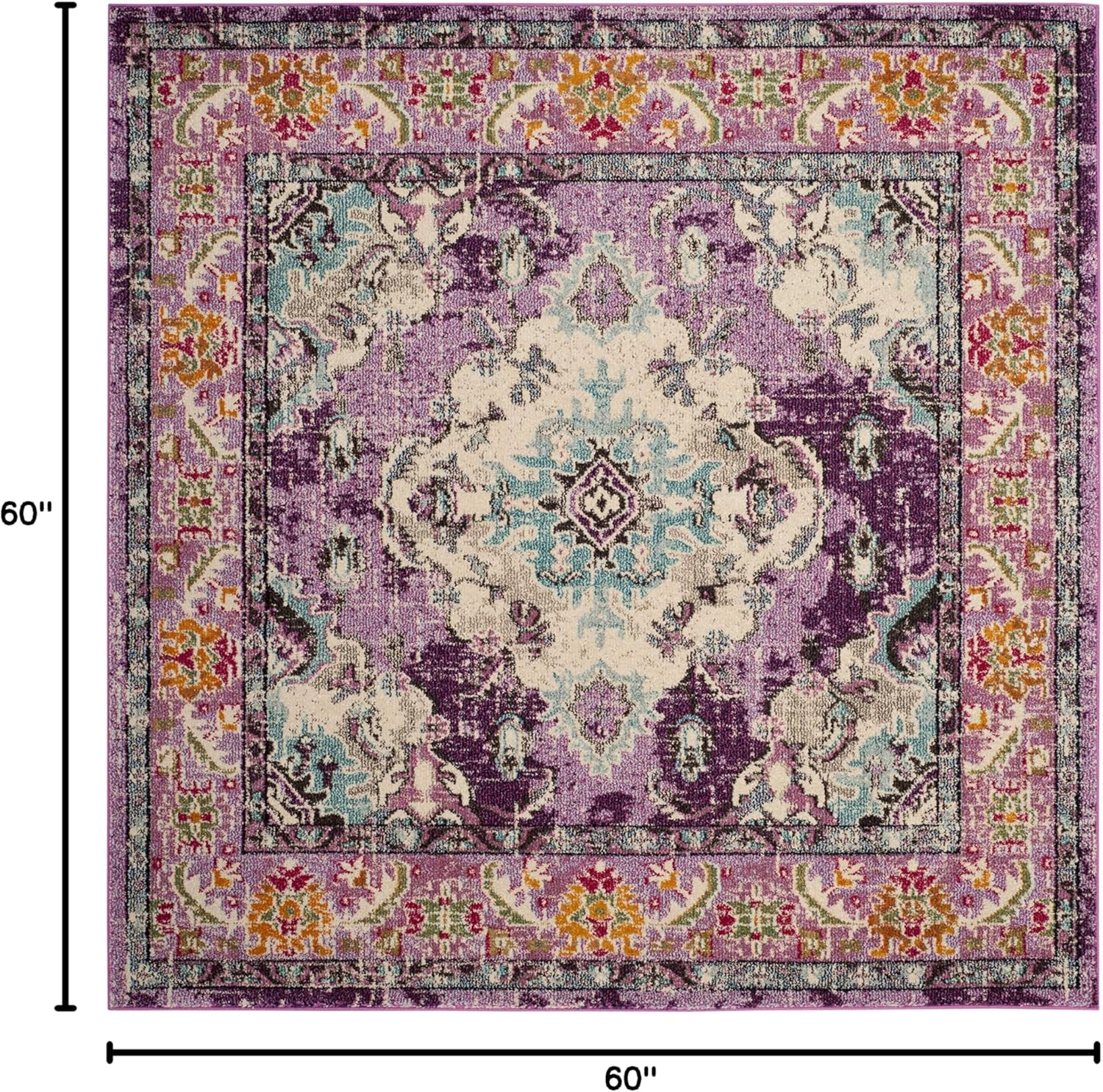 SAFAVIEH Monaco Collection Area Rug - 5' Square, Violet & Light Blue, Boho Chic Medallion Distressed Design, Non-Shedding & Easy Care, Ideal for High Traffic Areas in Living Room, Bedroom (MNC243L)