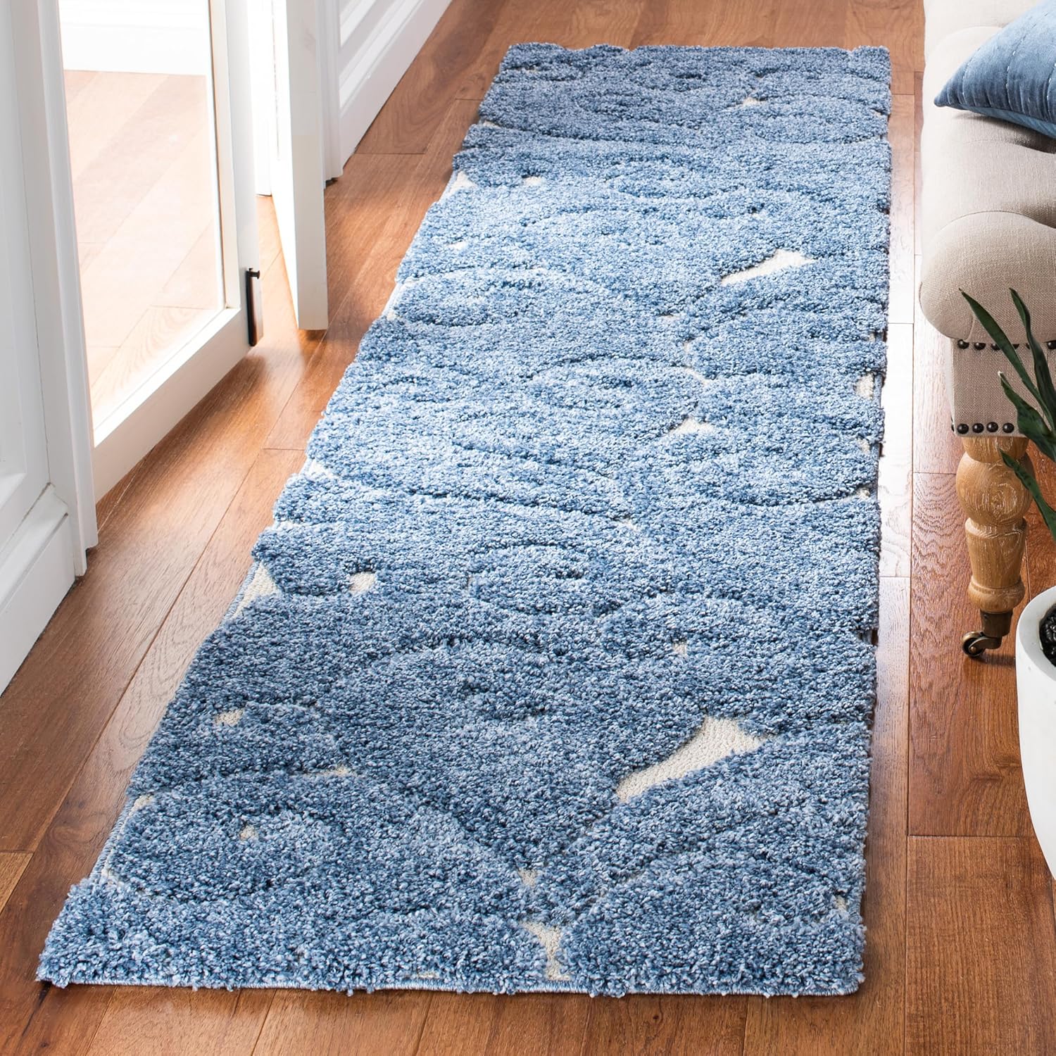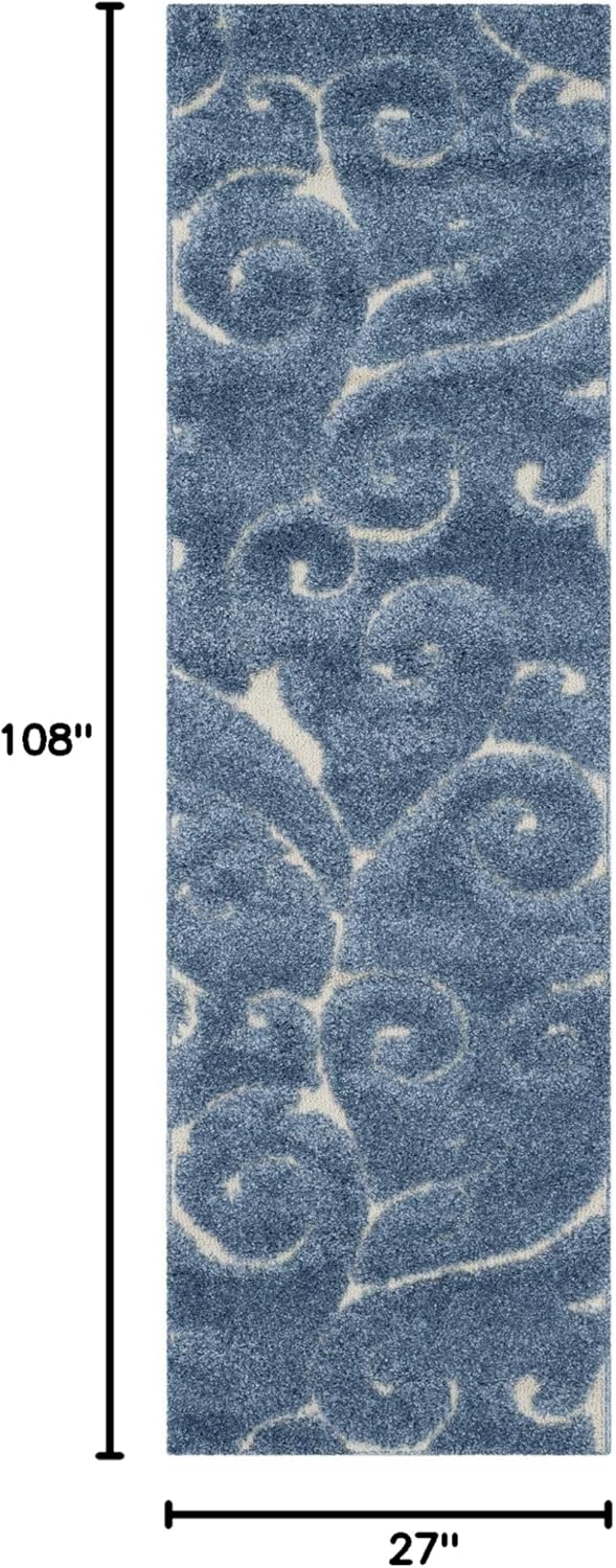 SAFAVIEH Florida Shag Collection Runner Rug - 2'3" x 9', Light Blue & Cream, Scroll Design, Non-Shedding & Easy Care, 1.2-inch Thick Ideal for High Traffic Areas in Living Room, Bedroom (SG455-6011)