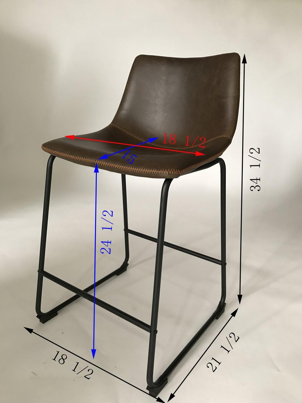 - Stool dimensions: 18.5"W x 21.5"D x 34.5"H, Seat: 18.5"W x 15"D x 24.5"H
