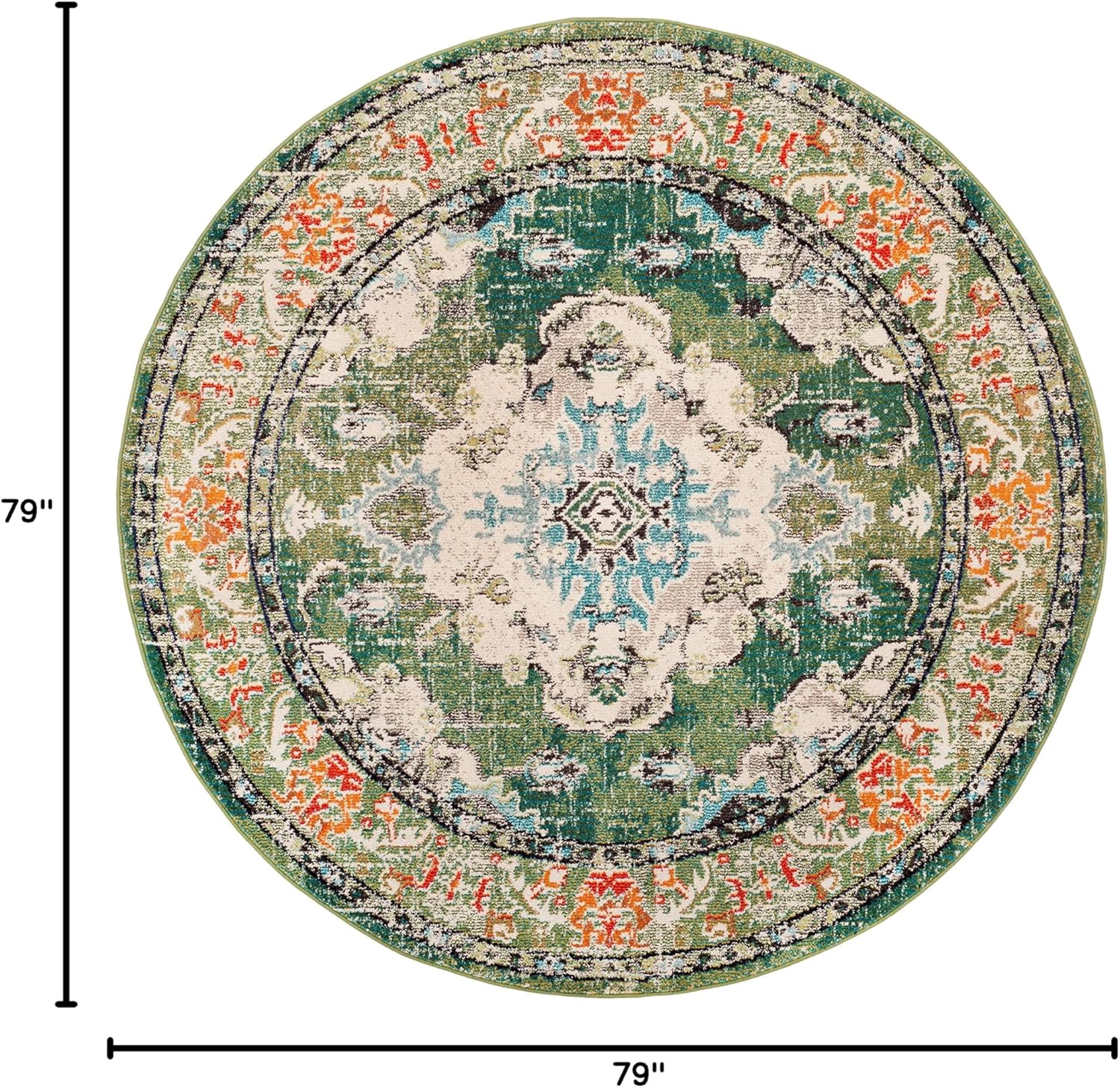 SAFAVIEH Monaco Collection Area Rug - 6'7" Round, Forest Green & Light Blue, Medallion Distressed Design, Non-Shedding & Easy Care, Ideal for High Traffic Areas in Living Room, Bedroom (MNC243F)