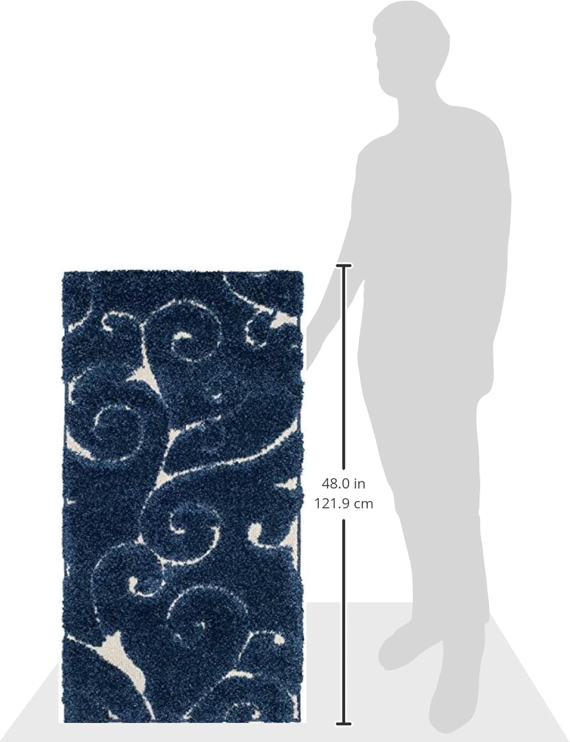 SAFAVIEH Florida Shag Collection Accent Rug - 2'3" x 4', Dark Blue & Cream, Scroll, Non-Shedding & Easy Care, 1.2-inch Thick Ideal for High Traffic Areas in Entryway, Living Room, Bedroom (SG455-6511)