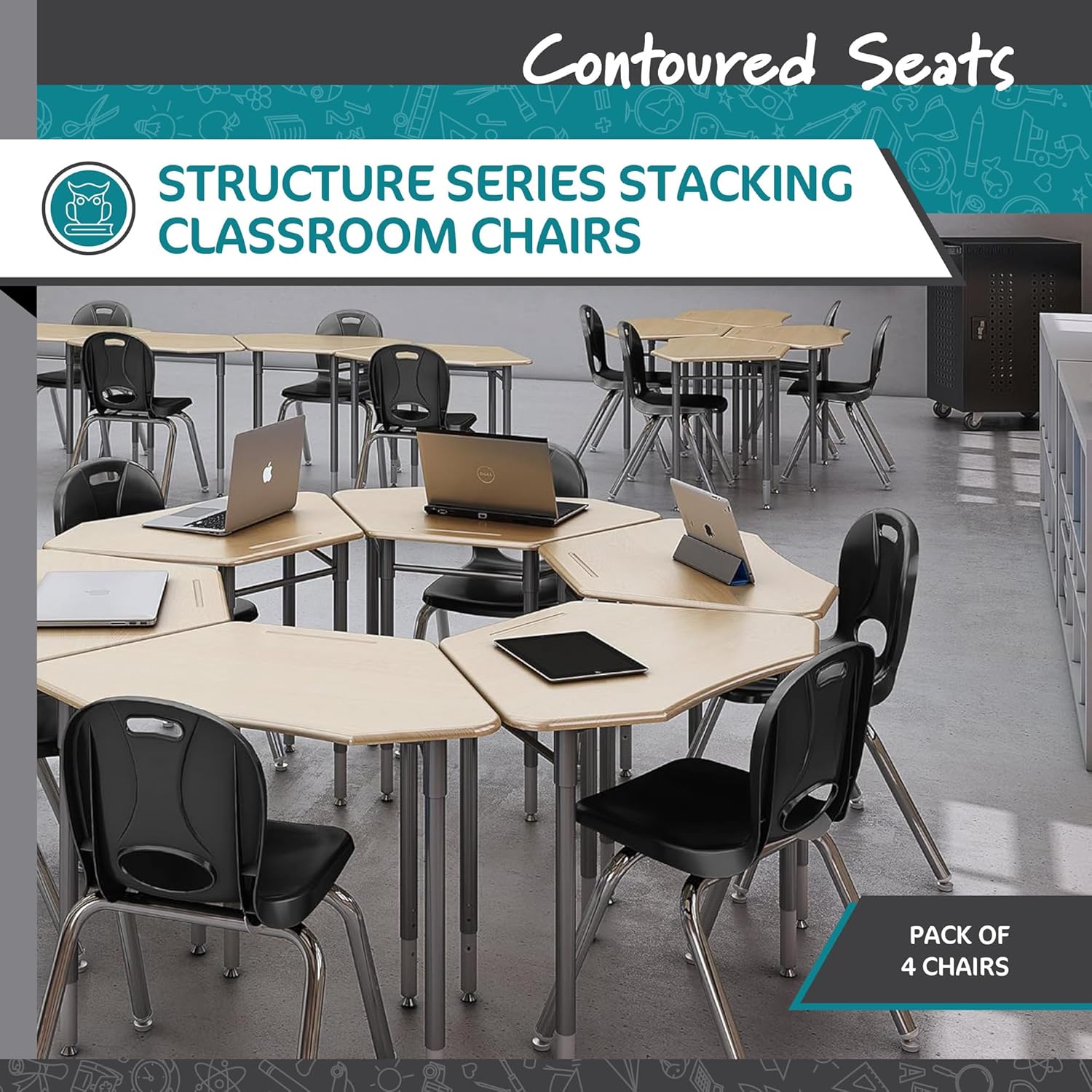 Learniture LNT-118-CSW-BK Learniture Structure Series Stackable School Chairs for Classroom, 18" Seat Height, Black, Pack of 4
