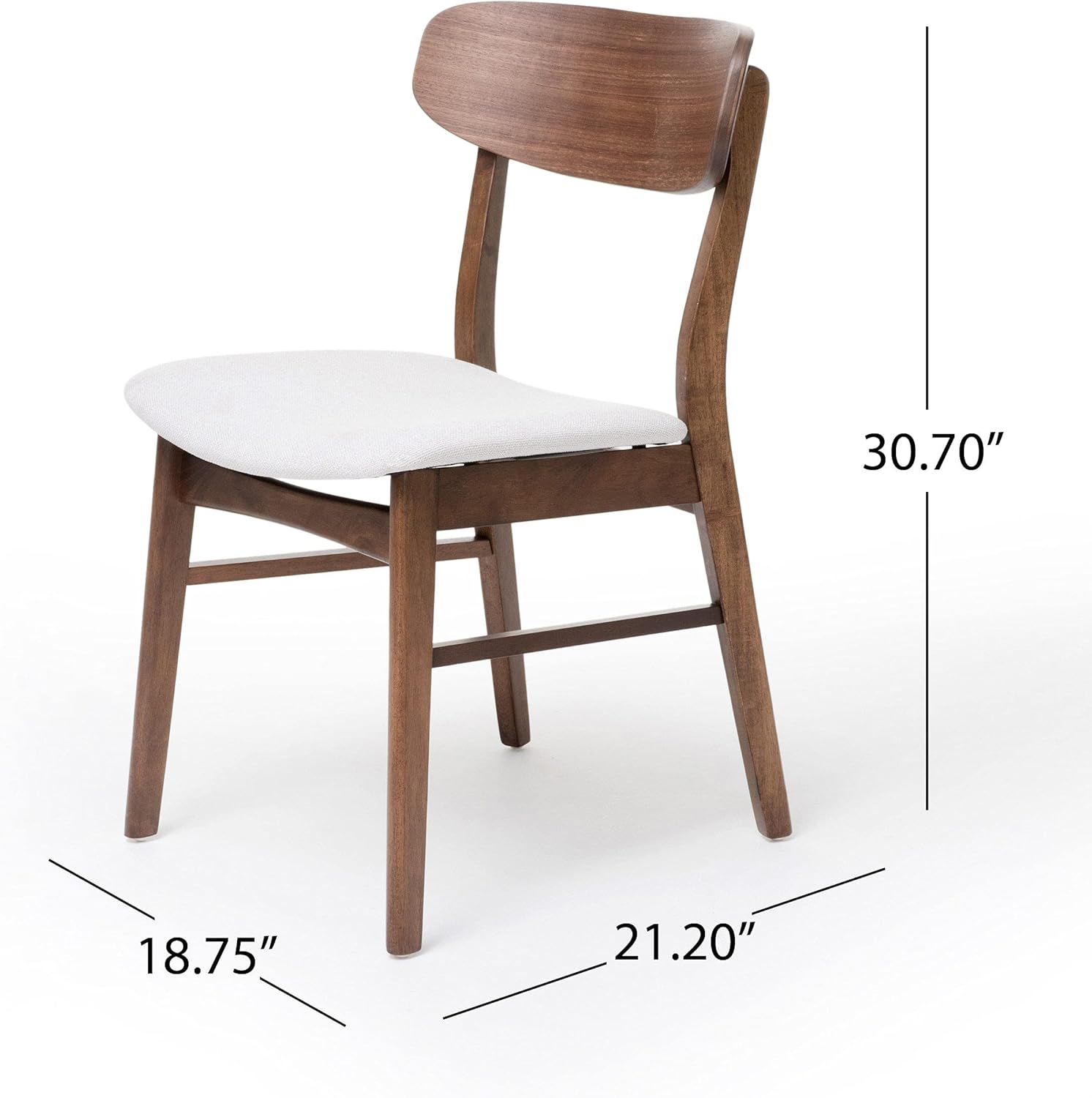 - With matching wood finishes, you can’t go wrong with this dining Set. Including one table and four chairs, this Set is ideal for any home. The mid-century style and smooth wood finishes of this Set will compliment any décor, so you don’t have to worry about clashing color pallets in your home. The dining chairs feature a sturdy design with soft fabric cushioned seats, providing both comfort and style for your dining pleasure