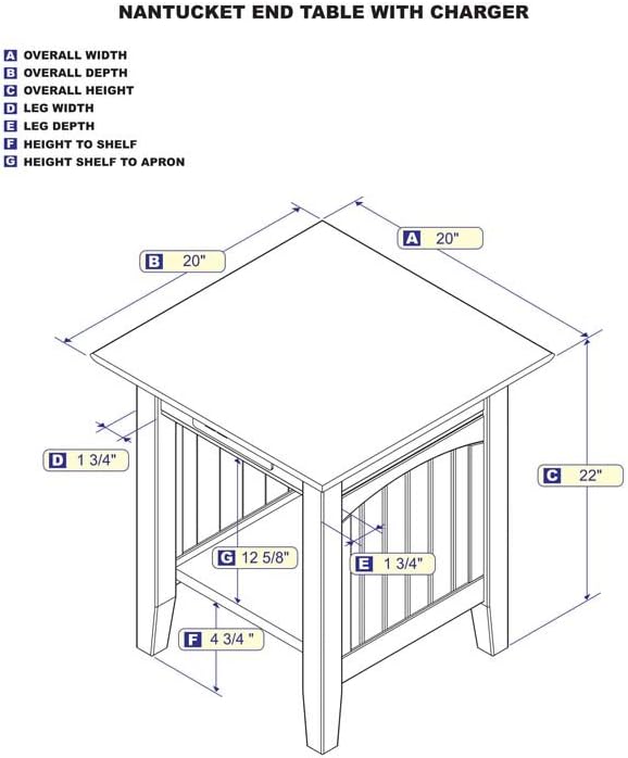 AFI Nantucket End Table with Built-in Charger in Walnut
