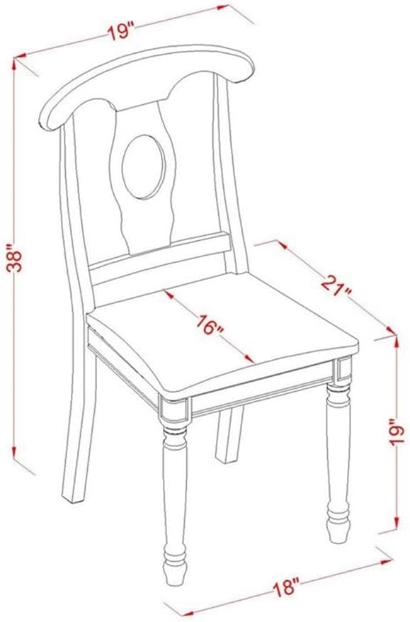 - PRODUCT DIMENSIONS: Dimensions of Dining Room Chairs are: Length: 21; Width: 18; Height: 38. Sizes of Rectangular Table are: Length: 84/66; Width: 42; Height: 30.
