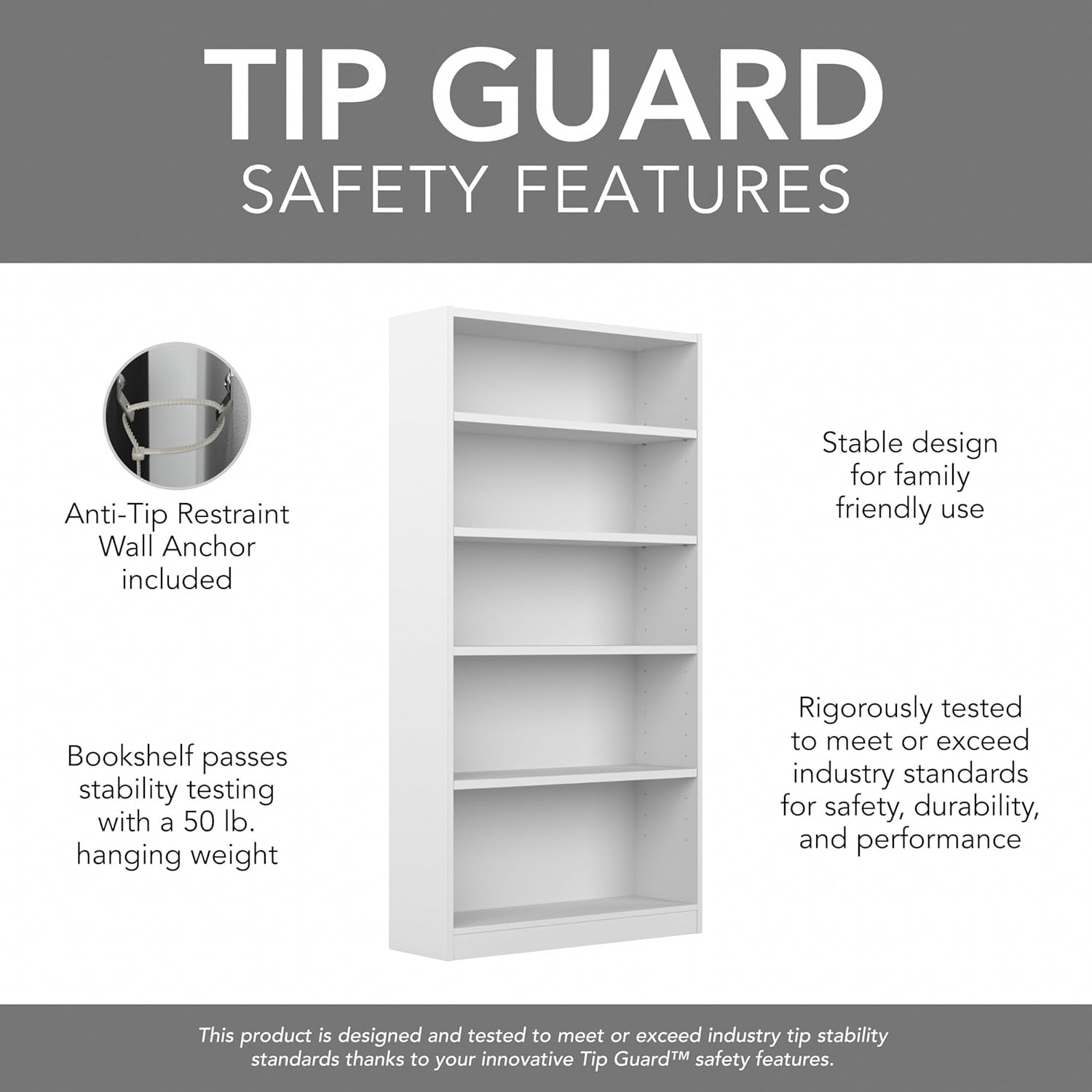 - BUILT TO LAST: The sturdy book shelves support up to 50 pounds and measure one inch thick to resist sagging over time. Our Tip Guard(TM) safety features include a stable design and wall attachment hardware for family-friendly safety in any space.
