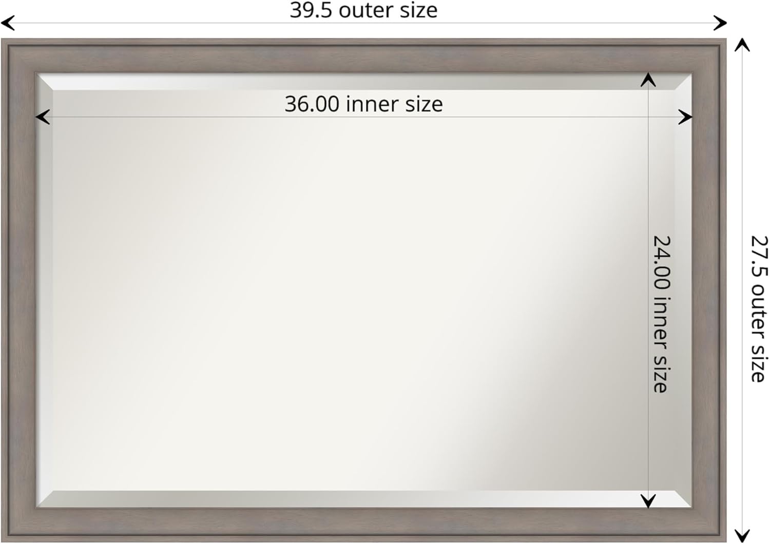 - MIRROR DETAILS: This mirror features premium glass for a clear, undistorted image and is finished with a beveled edge to give the glass a decorative touch. The overall size of this wall mirror measures exactly 39.5 x 27.5 inches, including the frame. Its reflective area measures 36 x 24 inches.