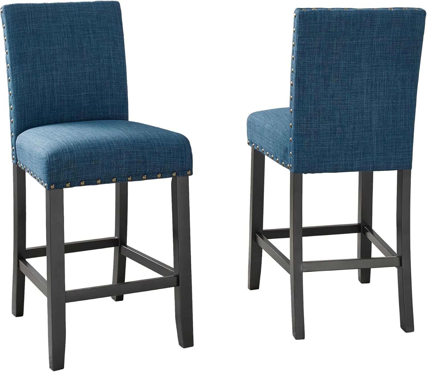 Biony Blue Fabric Counter Height Stools with Nailhead Trim, Set of 2