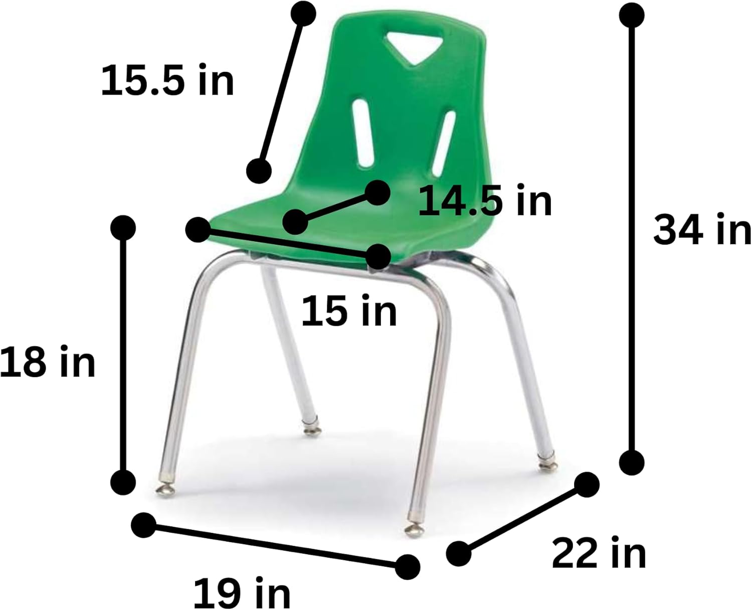 - SET OF 6 STACKING CHAIR CHROME PLATED LEGS - 18" Ht - GREEN - stackable chair great for kids to enjoy reading, socializing, and more. Easily stacks for convenient organization and freeing up space.