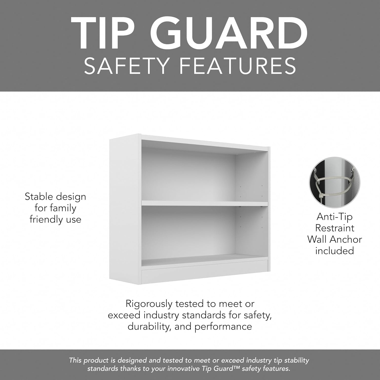 Bush Furniture Universal Small 2 Shelf Bookcase in White, Low Storage and Display Bookshelf for Home Office or Living Room Organization