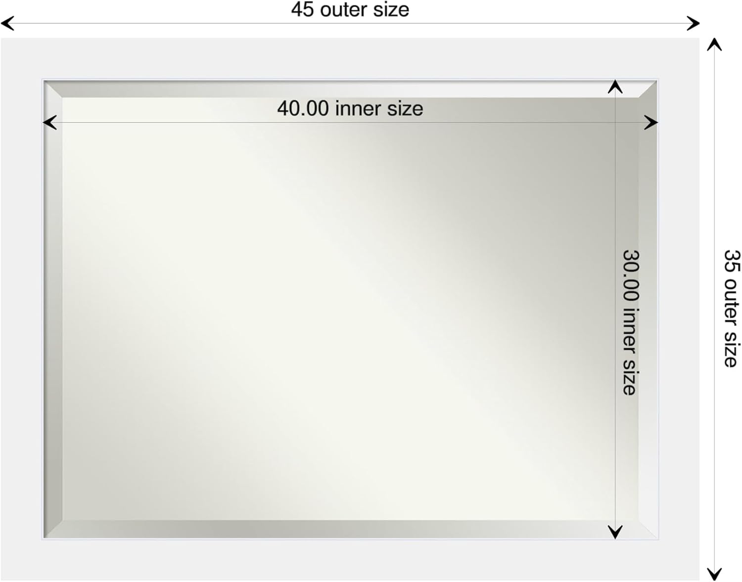Amanti Art White Bathroom Mirror for Over Sink, 35x45 Corvino White Rectangle Vanity Mirror, X-Large Modern Contemporary Wood Frame, Hangs Horizonally and Vertically, Bathroom Wall Decor, Beveled Edge