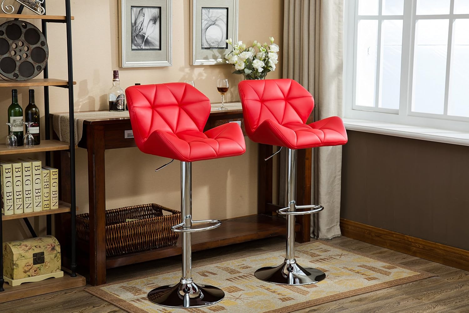 Roundhill Furniture Glasgow Contemporary Tufted Adjustable Height Hydraulic Red Bar Stools, Set of 2