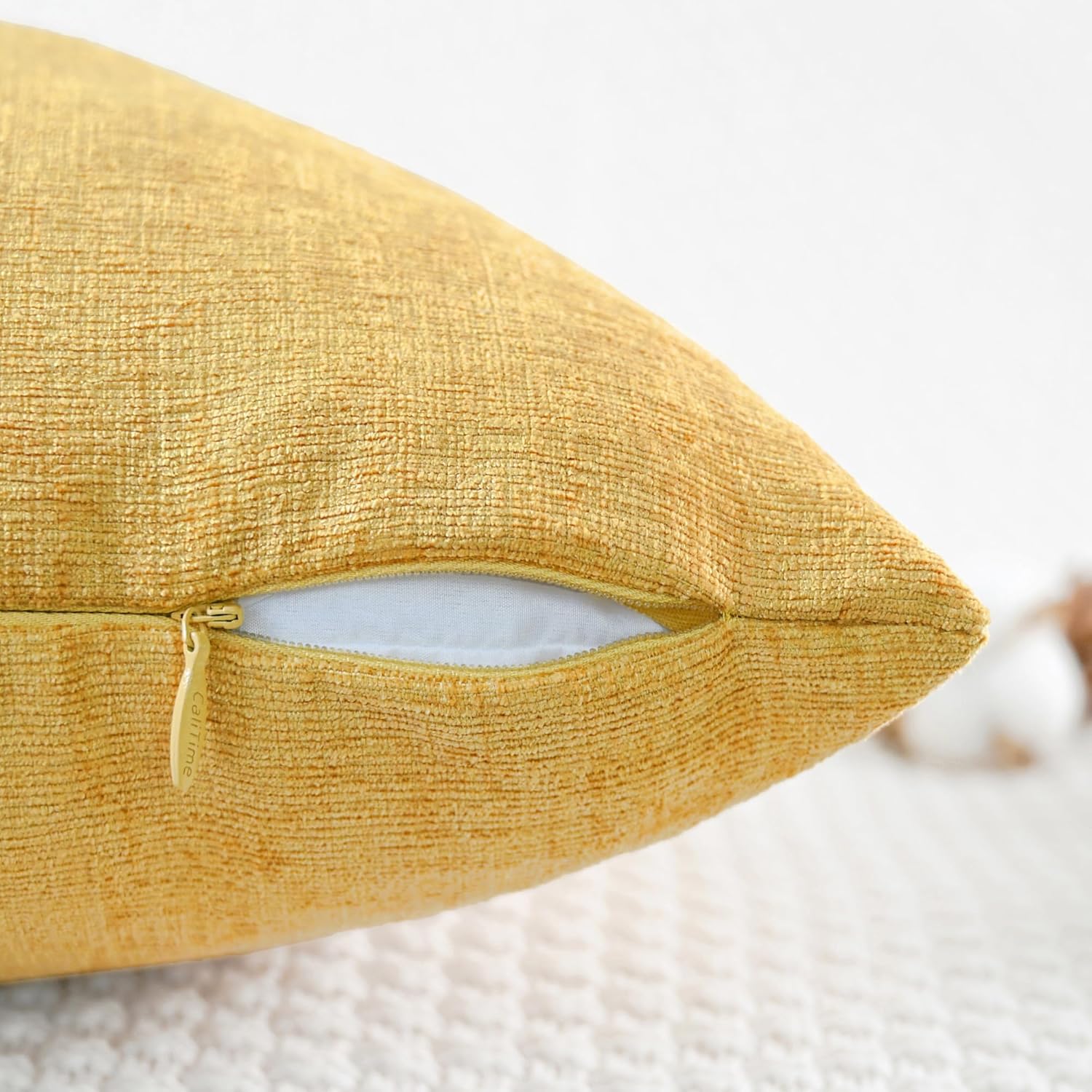 CaliTime Throw Pillow Covers Decorative 18 X 18 Inches Pack of 2 Cozy Chenille Cushion Cases for Couch Sofa Bed Living Room Home Gold