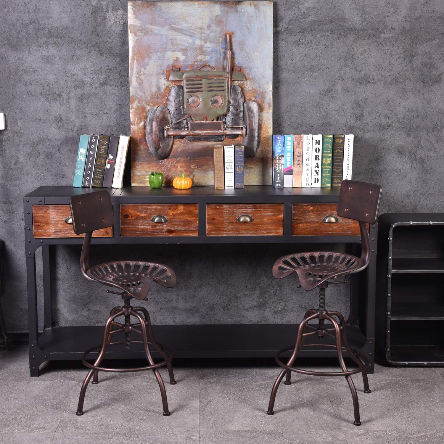 - Vintage Style: Industrial design with metal frame and saddle bar stool legs for rustic charm