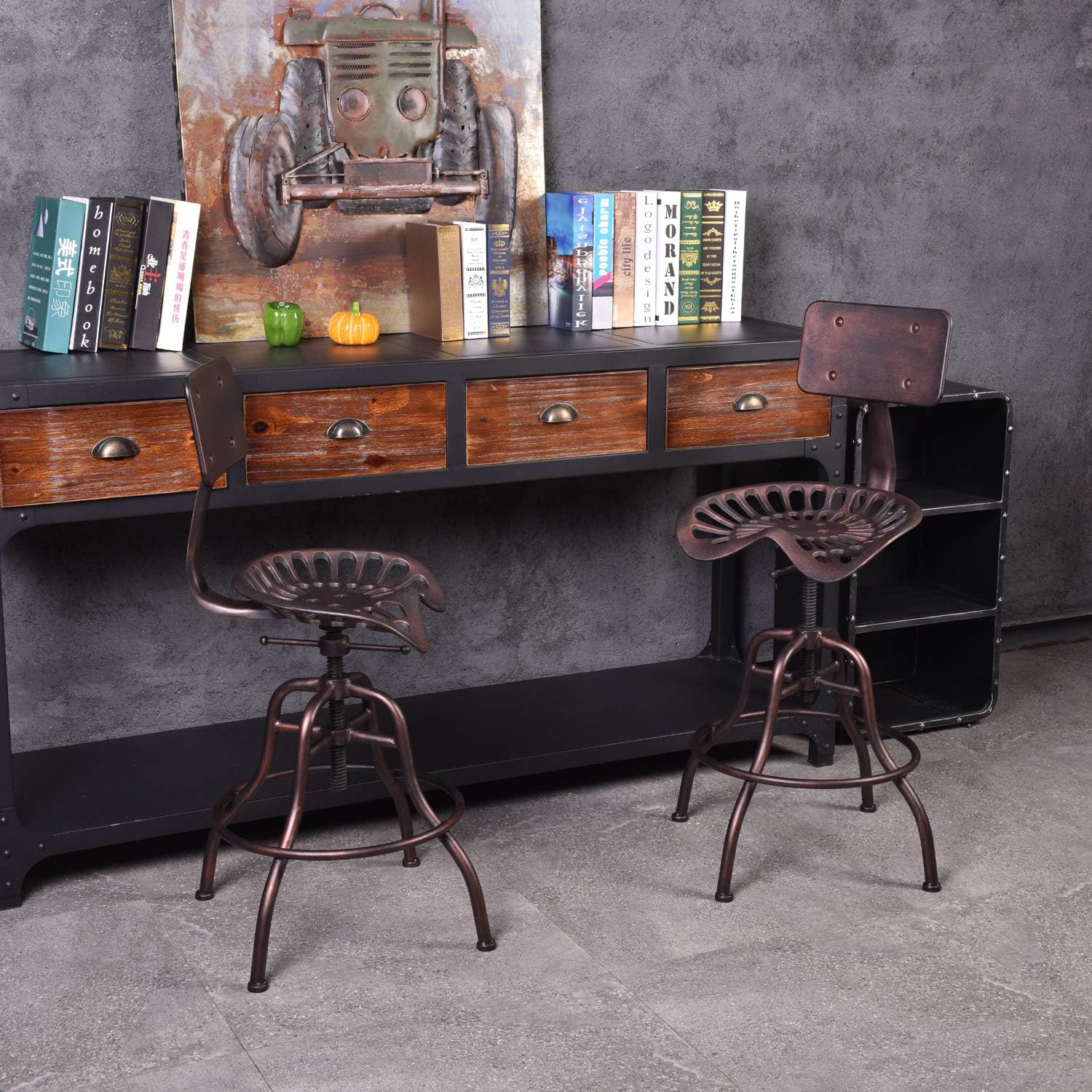 Diwhy Industrial Design Metal Adjustable Height Backrest Chair Vintage Tractor Saddle Bar Stool (Copper)