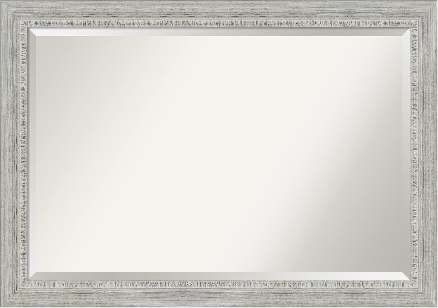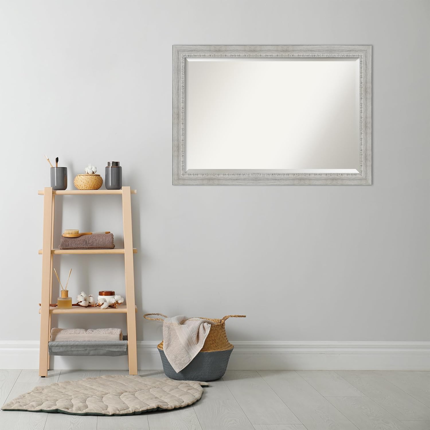 Amanti Art White Bathroom Mirror for Over Sink, 29x41 Rustic White Wash Rectangle Vanity Mirror, Large Rustic Farmhouse Wood Frame, Hangs Horizonally and Vertically, Bathroom Wall Decor, Beveled Edge