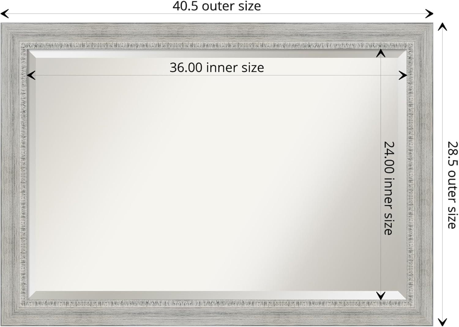 - MIRROR DETAILS: This mirror features premium glass for a clear, undistorted image and is finished with a beveled edge to give the glass a decorative touch. The overall size of this bathroom mirror measures exactly 40.5 x 28.5 inches, including the frame. Its reflective area measures 36 x 24 inches.