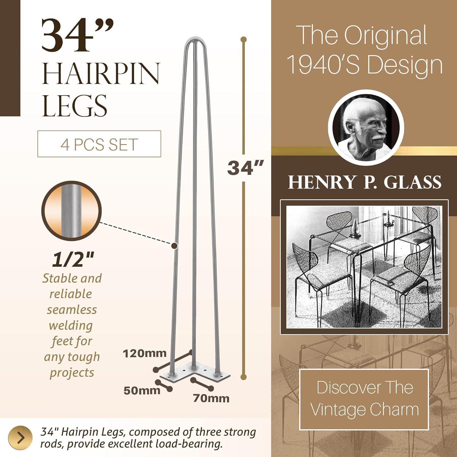 - Timeless Style: The combination of modern & vintage. Industrial raw steel color hair pin legs come with an over-time changing surface. It is perfect for contemporary and traditional décor styles.