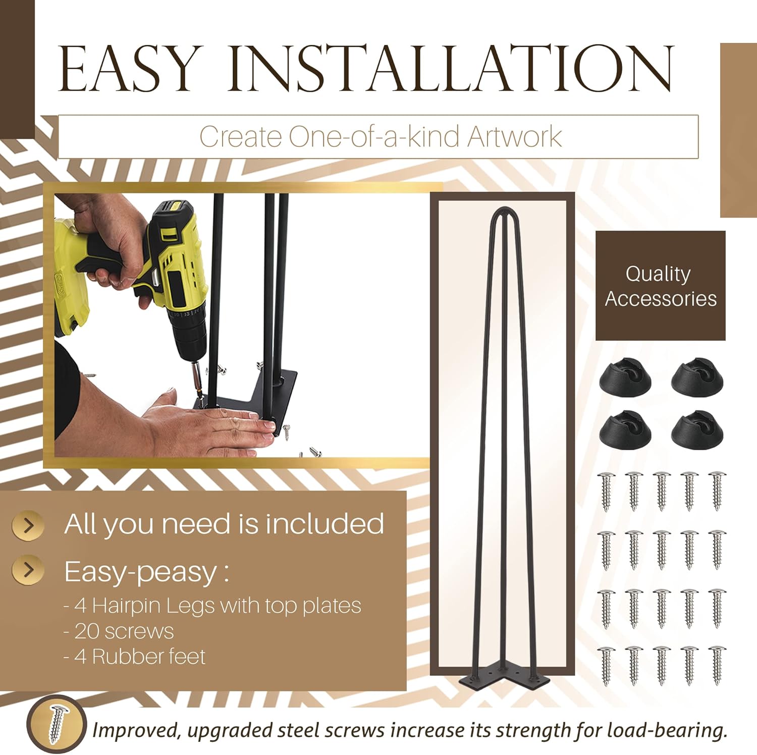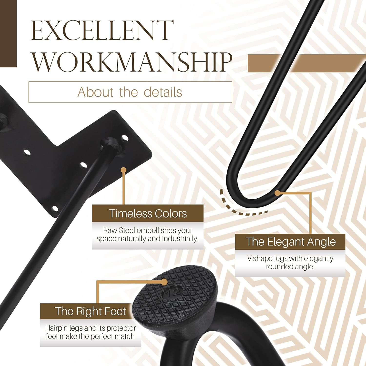 - Timeless Style: The combination of modern & vintage. Hairpin legs are perfect for contemporary and traditional décor styles. High-quality black coating delivers long-lasting surface & rust resistance