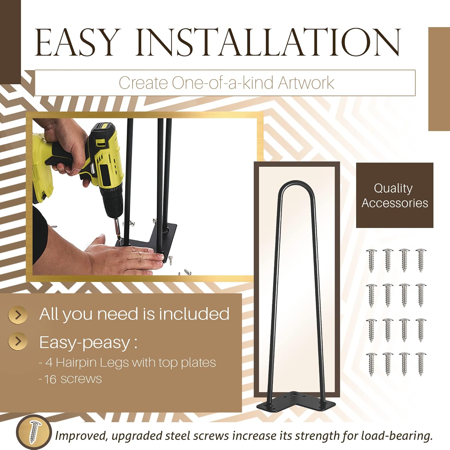 - Easy Installation: All parts are included. Feel free to rely on the upgraded steel screws. Being a designer of your own could never be easier! Tasteful furniture is only a few screws away.
