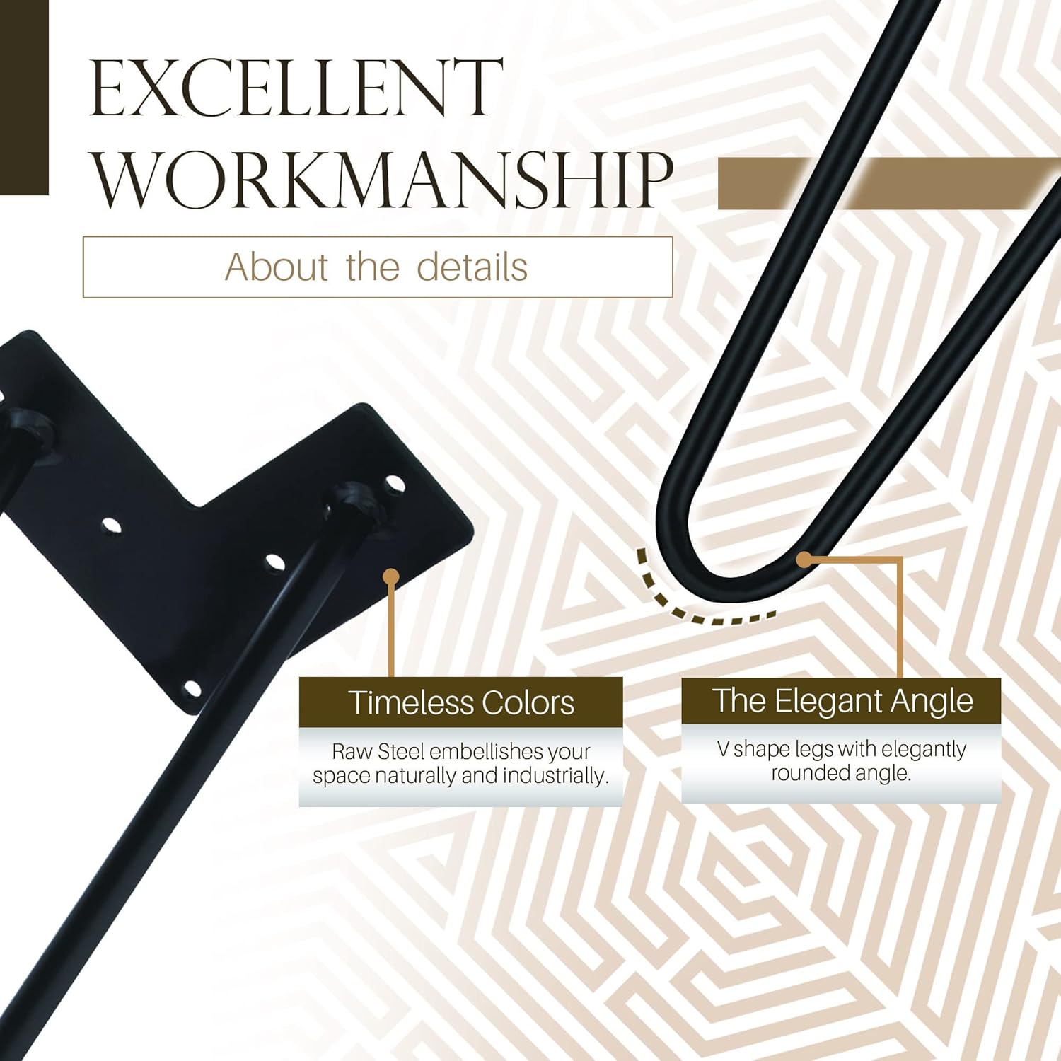 - Timeless Style: The combination of modern & vintage. Hairpin legs are perfect for contemporary and traditional décor styles. High-quality black coating delivers long-lasting surface & rust resistance