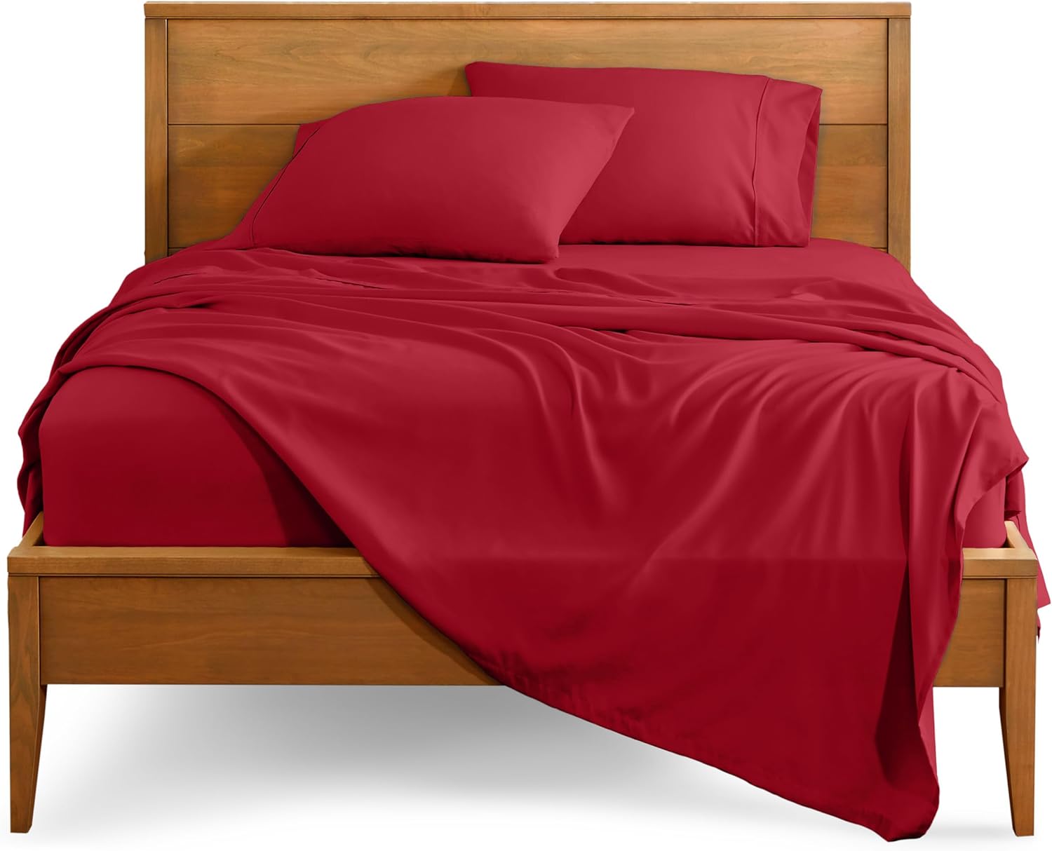 Bare Home Queen Sheet Set - Luxury 1800 Ultra-Soft Microfiber Queen Bed Sheets - Double Brushed - Deep Pockets - Easy Fit - 4 Piece Set - Bedding Sheets & Pillowcases (Queen, Red)