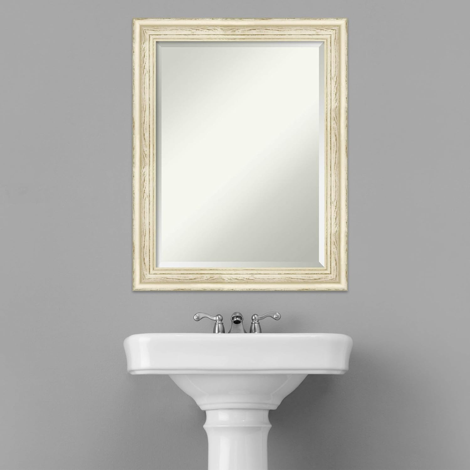 Amanti Art White Bathroom Mirror for Over Sink, 29x23 Country White Wash Rectangle Vanity Mirror, Medium Rustic Farmhouse Wood Frame, Hangs Horizonally and Vertically, Bathroom Wall Decor, Beveled