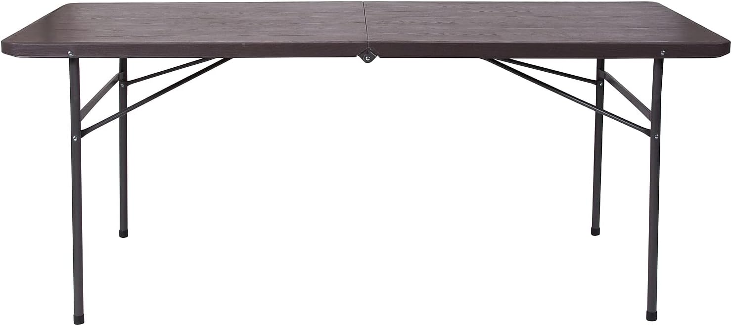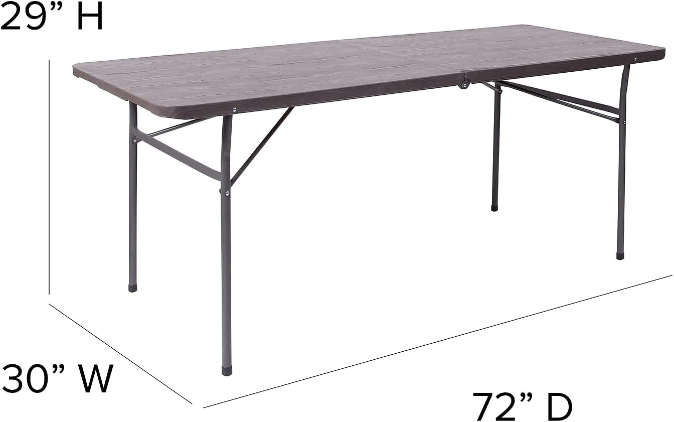 Flash Furniture Elijah 6-Foot Bi-Fold Brown Wood Grain Plastic Folding Table with Carrying Handle