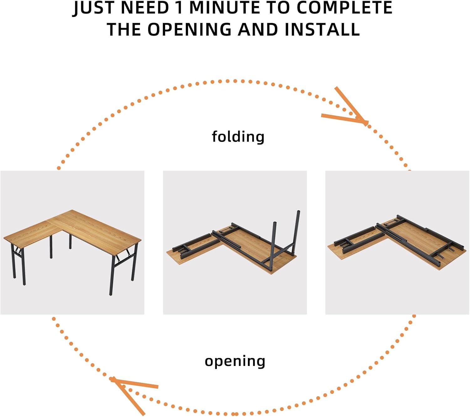 - 【Multi-Propose Usage】-The L-shaped computer desk for small spaces usage will reach your requirement for any room. Our folding desk is a good choice for your home office to be a computer desk, work desk in your bedroom or living room. It is also a great present for your kids to be their study table or game table. Also, this portable desk is very convenient to take out to anywhere