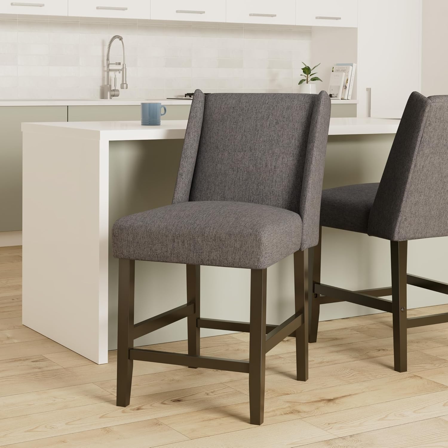 - KITCHEN STOOL: Designed in a modern shape and fabric, our Stool Chair features a 7-inch deep cushion for comfort and is perfectly completed with a premium wood finish