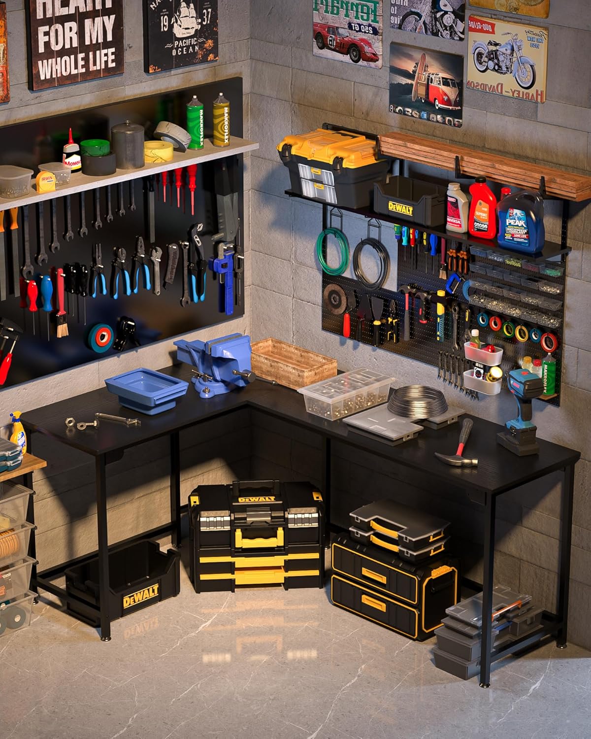 - [Easy Assemble] L shaped desk design with M-Style buckles, make it more easily to assemble. Package with all parts, tools and instructions.