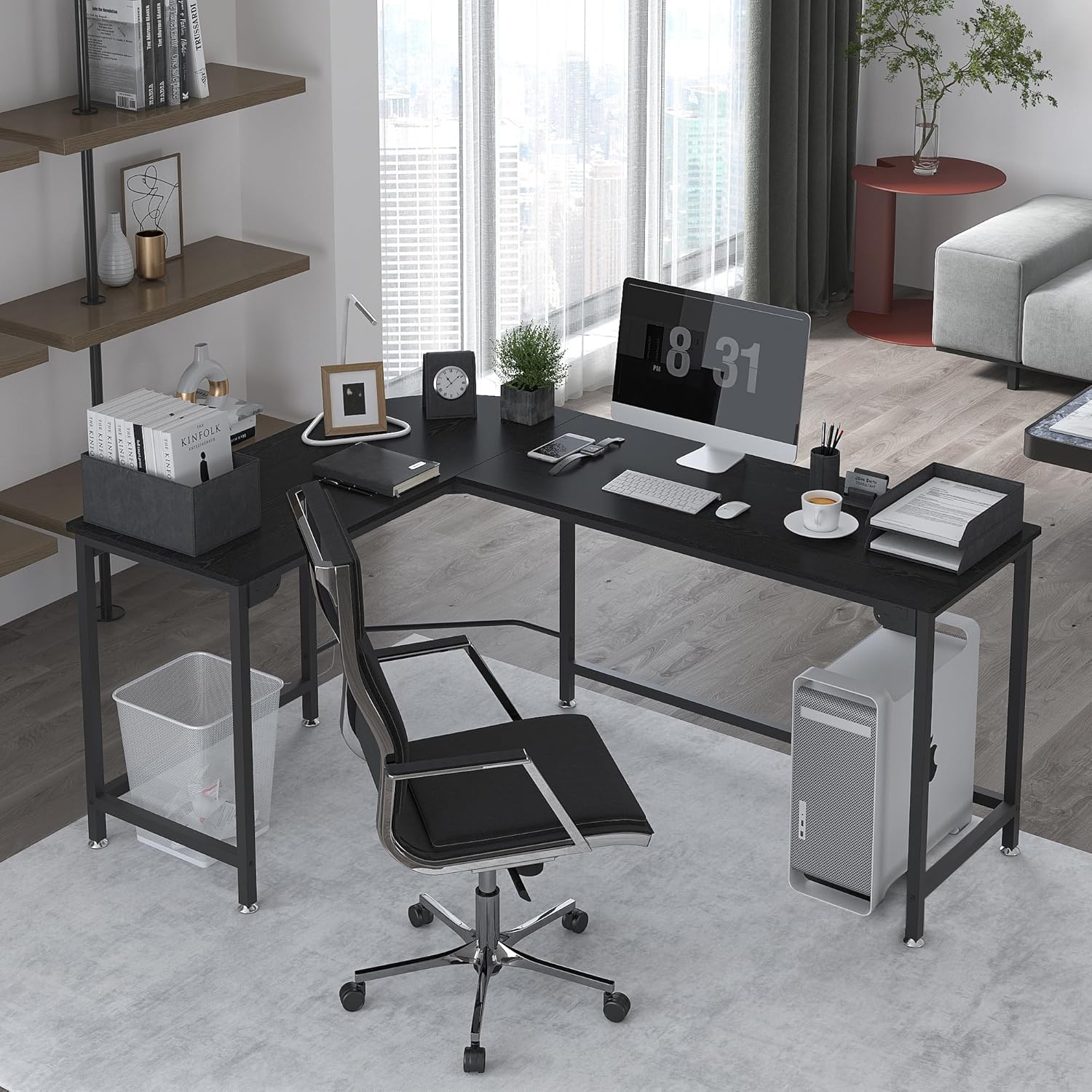 - [L-Shaped Corner Design] This office desk has an L-shaped corner design, which offers a corner wedge for easy multitasking and organization with space-saving needs and many storage solutions for your home office, maximize and create ideal workspace.
