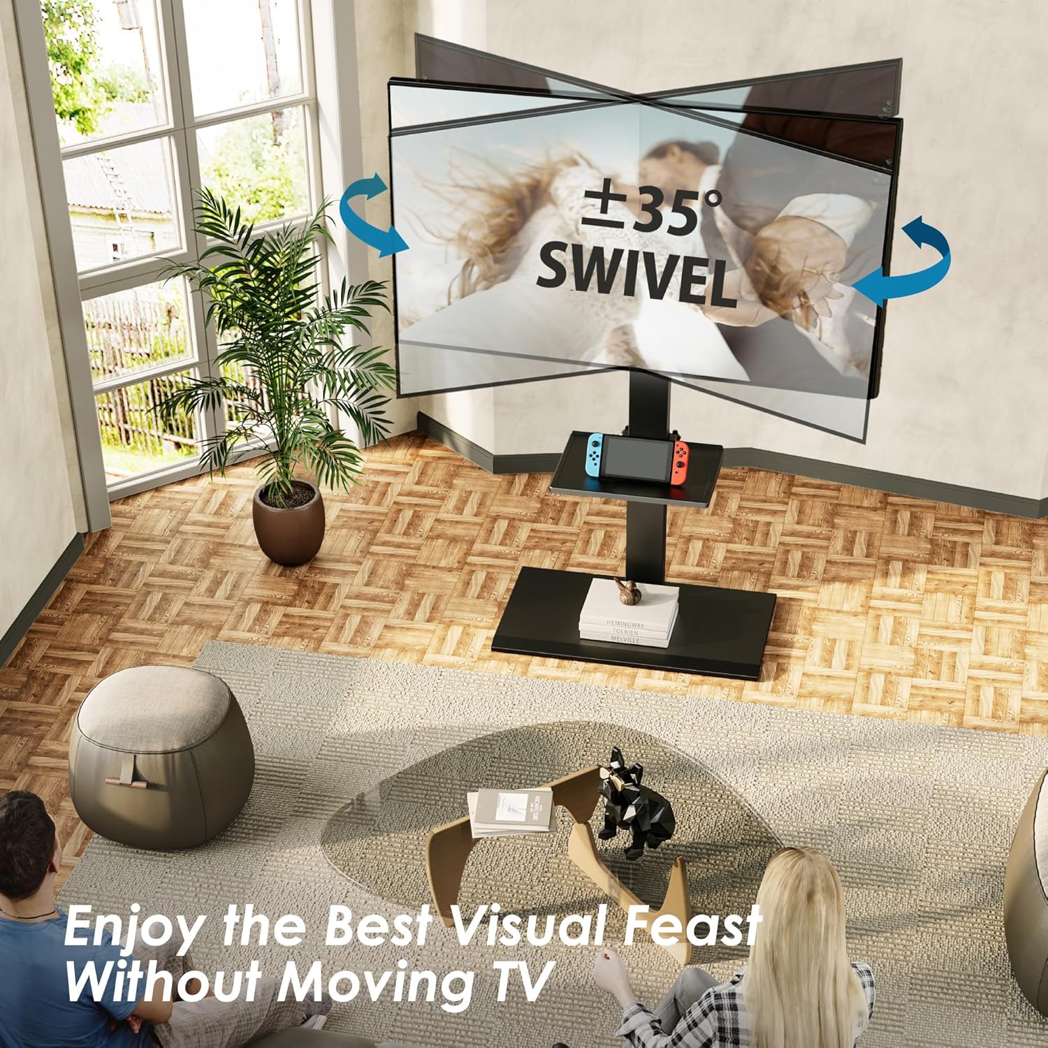 - Height Adjustment & 70 Degree Swivel Mount: There are height adjustment in this 85 Inches tall TV Stand for living room and bedroom. Meanwhile, this corner TV stand could swivel left and right 35 degrees to provide you a better viewing angles while watching TV