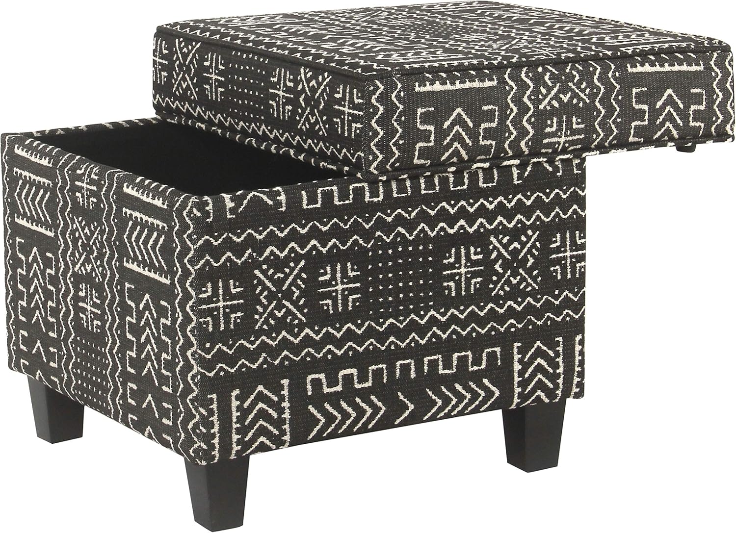 - STORAGE OTTOMAN: This Classic Square Ottoman with Storage with lift-off top is perfectly completed with wood legs in a striking ebony finish | Scaled to fit in a smaller place