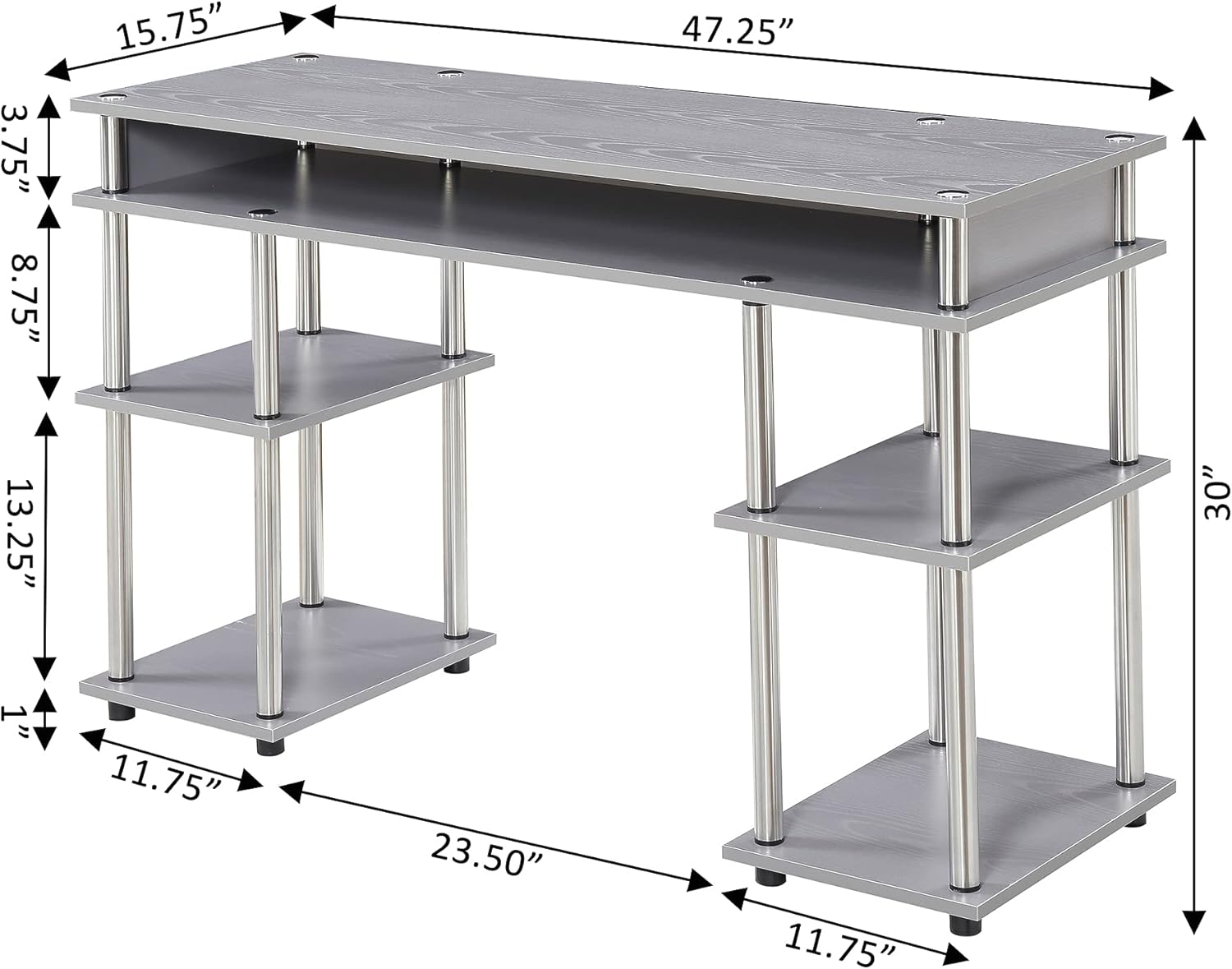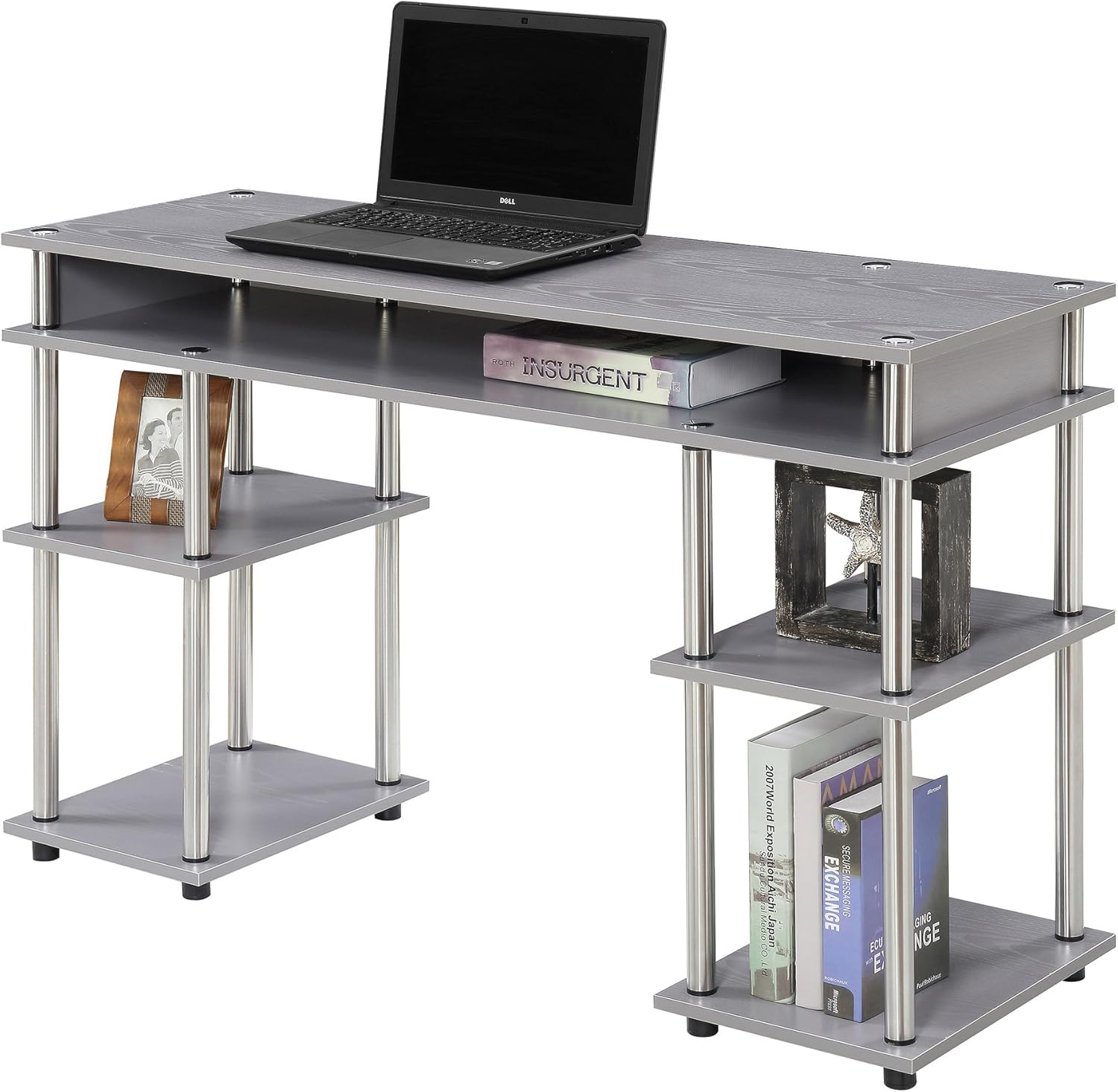 Convenience Concepts Designs2Go No Tools Student Desk in Light Gray Wood Finish