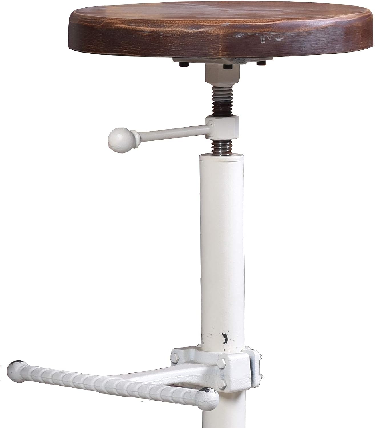Topower Industrial Retro Vintage Farm Wooden Tractor Stool Kitchen Swivel Height Adjustable bar Stool (Antique White)