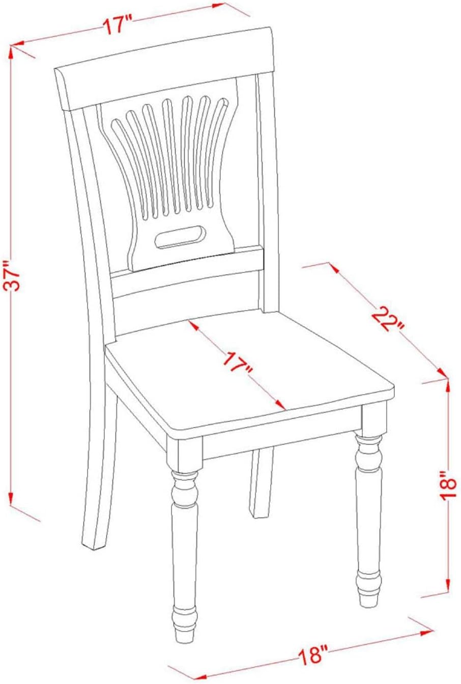 - PRODUCT DIMENSION: The Dining Room Table Dimension: Length: 42; Width: 42; Height: 29.5. The Dimension of the Kitchen Chair: Length: 22; Width: 18; Height: 37.