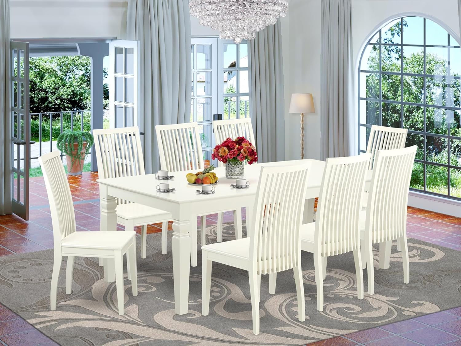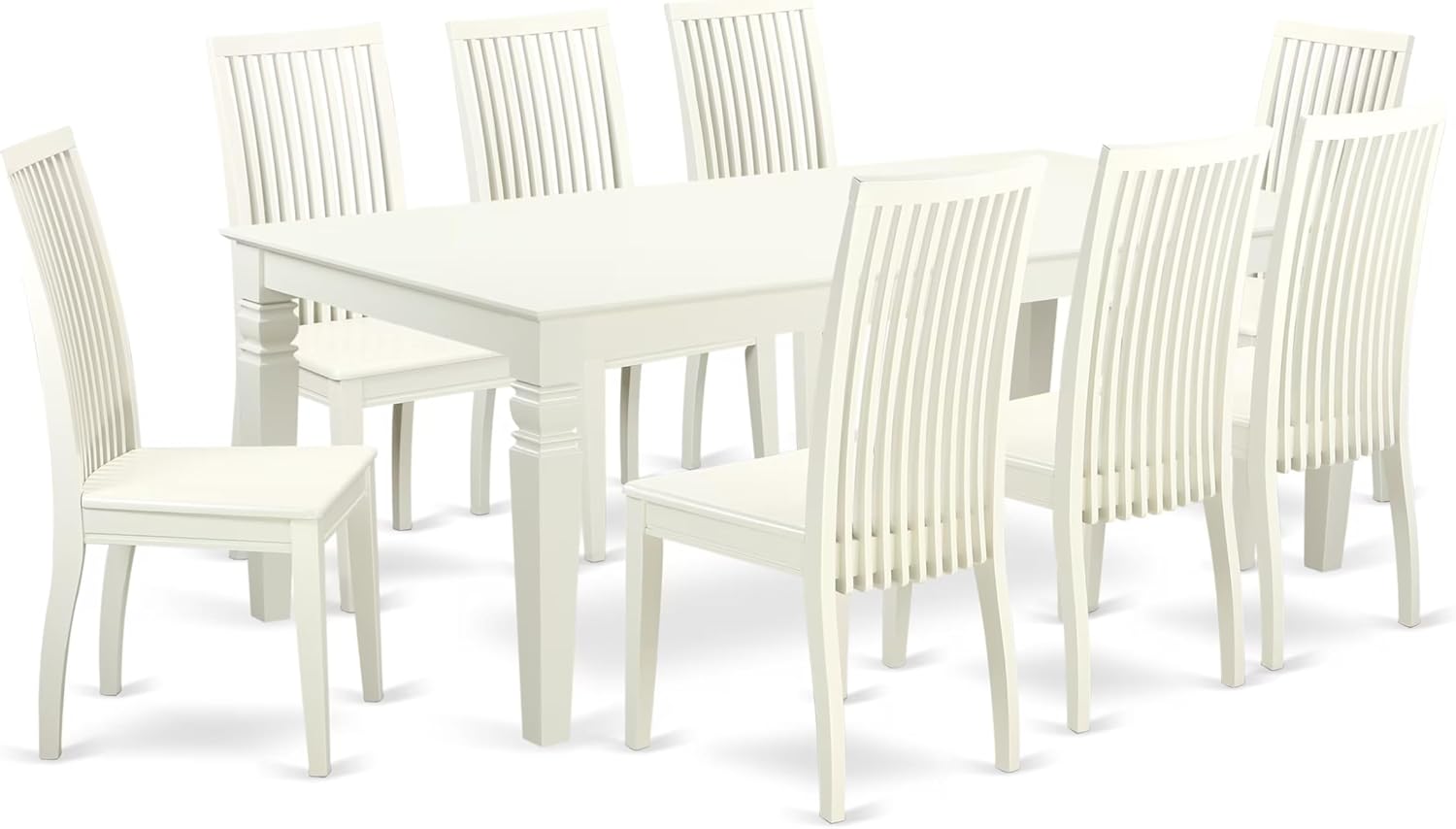 East West Furniture LGIP9-LWH-W 9 Piece Dining Table Set Includes a Rectangle Dining Room Table with Butterfly Leaf and 8 Wooden Seat Chairs, 42x84 Inch, Linen White