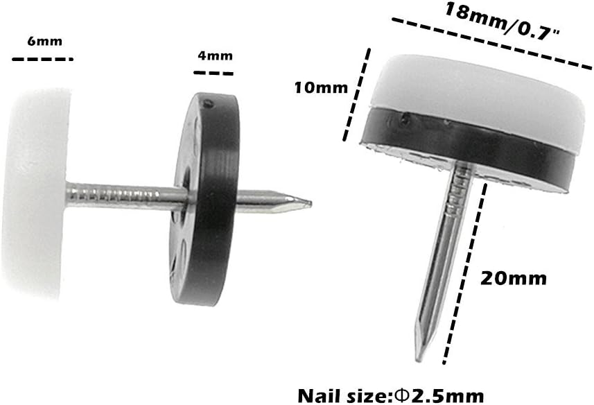 ALIMITOPIA 40pcs Furniture Glide Nail-in Thickened Nylon Chair Glide Slider Furniture Pad Floor Protector for Wooden Furniture Chair Tables Leg Feet(Φ18mm or 0.7";White)