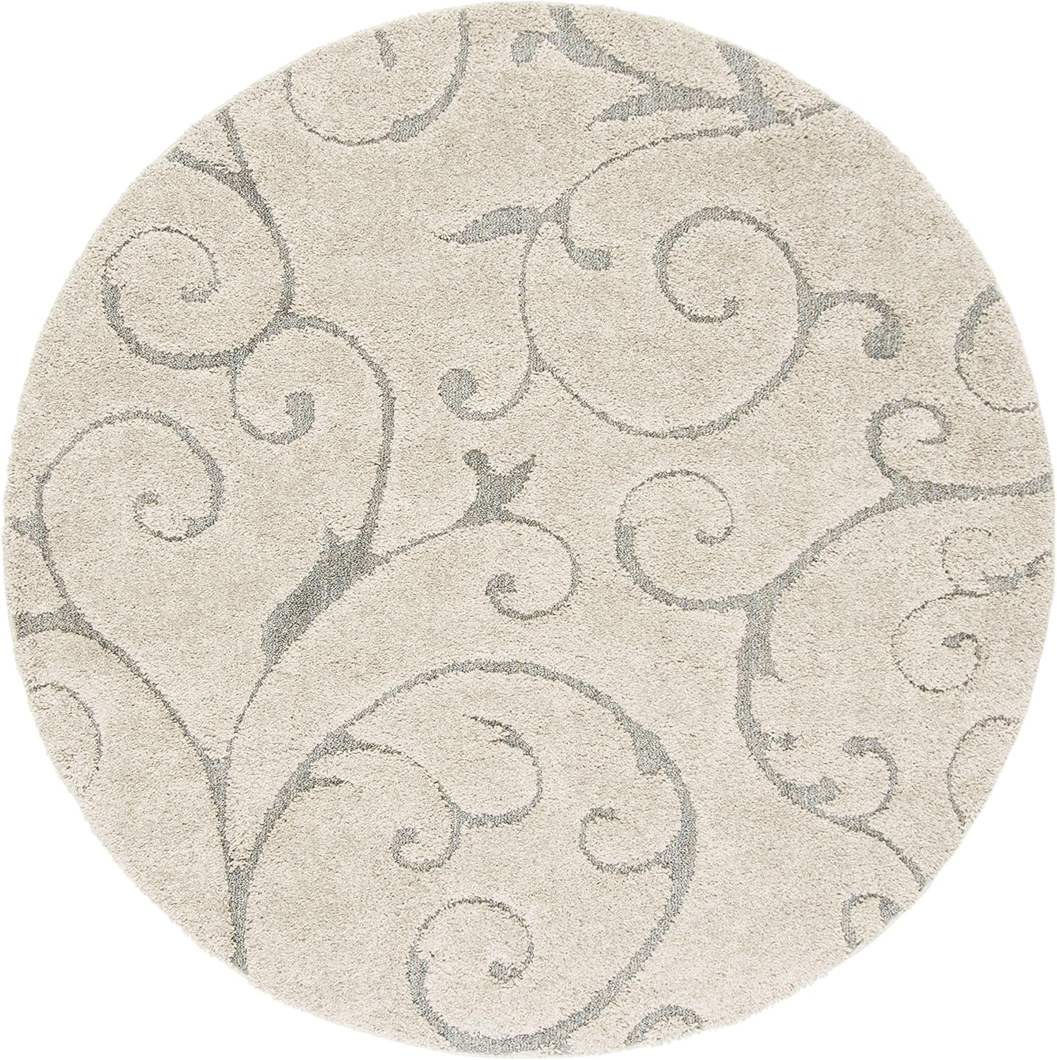 SAFAVIEH Florida Shag Collection Area Rug - 6'7" Round, Beige & Blue Grey, Scroll Design, Non-Shedding & Easy Care, 1.2-inch Thick Ideal for High Traffic Areas in Living Room, Bedroom (SG455-1155)