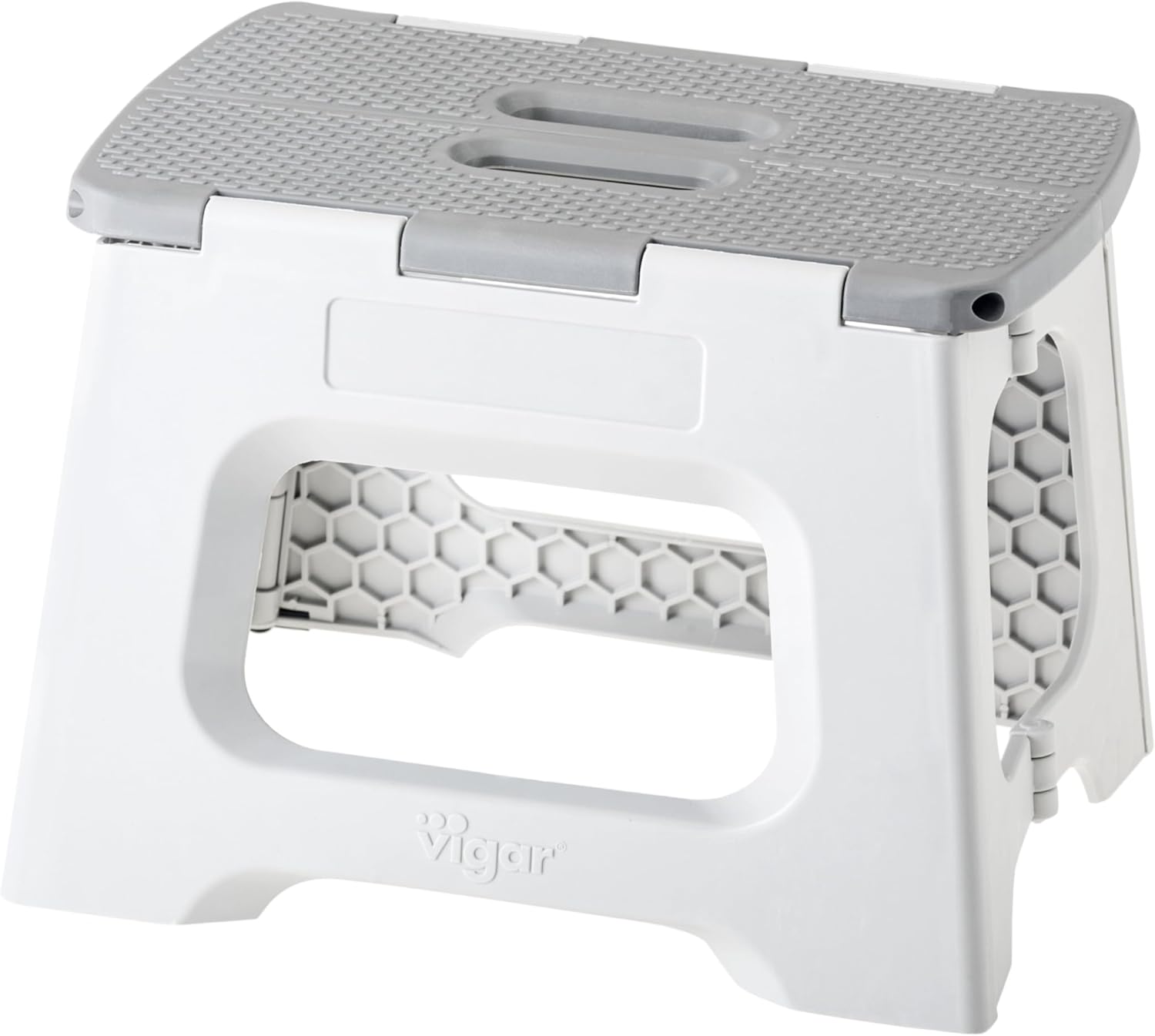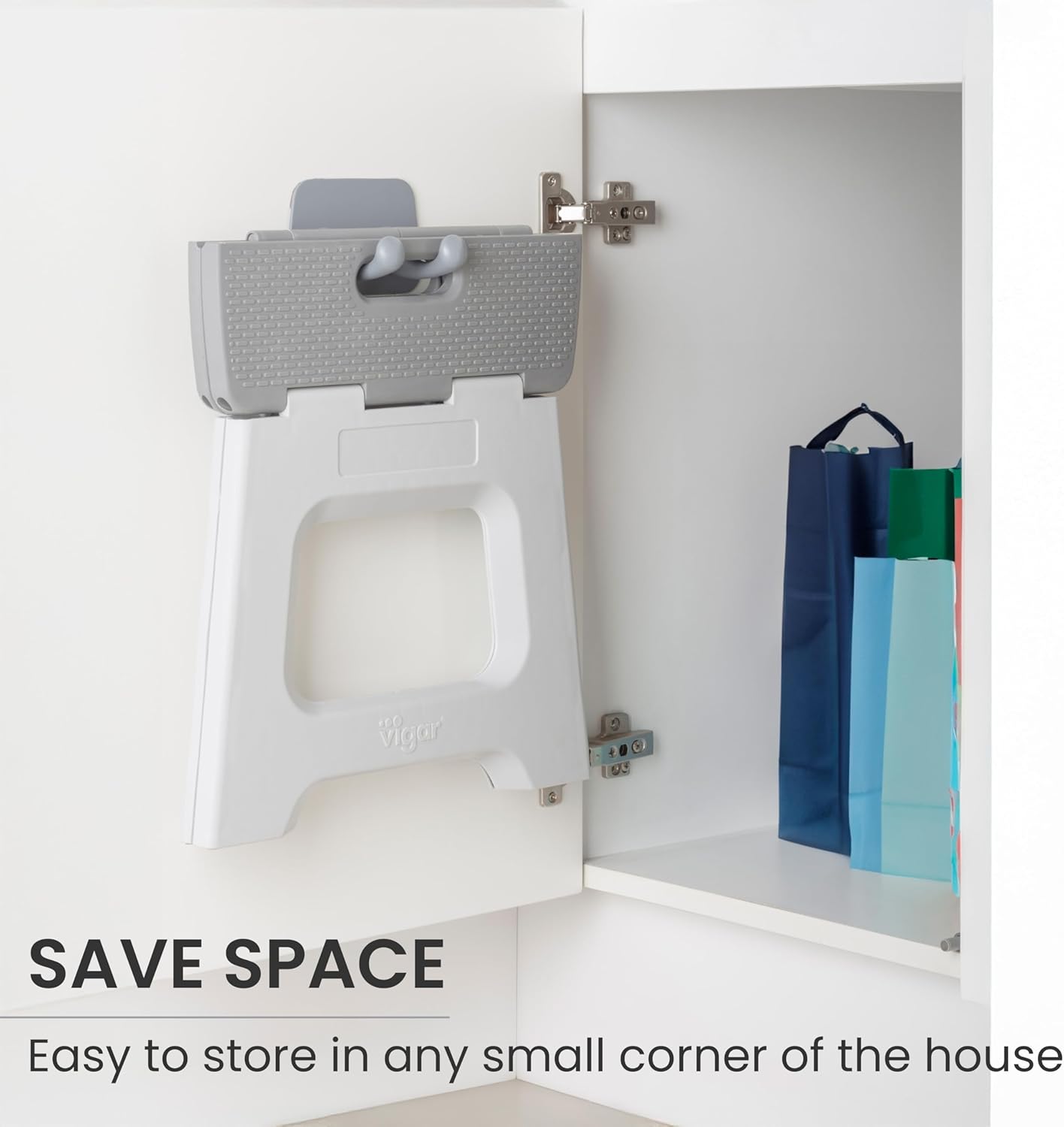 Vigar Compact Step Stool Foldable, 9-inch Step Stools for Adults up to 330 Pound, Lightweight Stool, Non-Slip Folding Step Stool, Gray