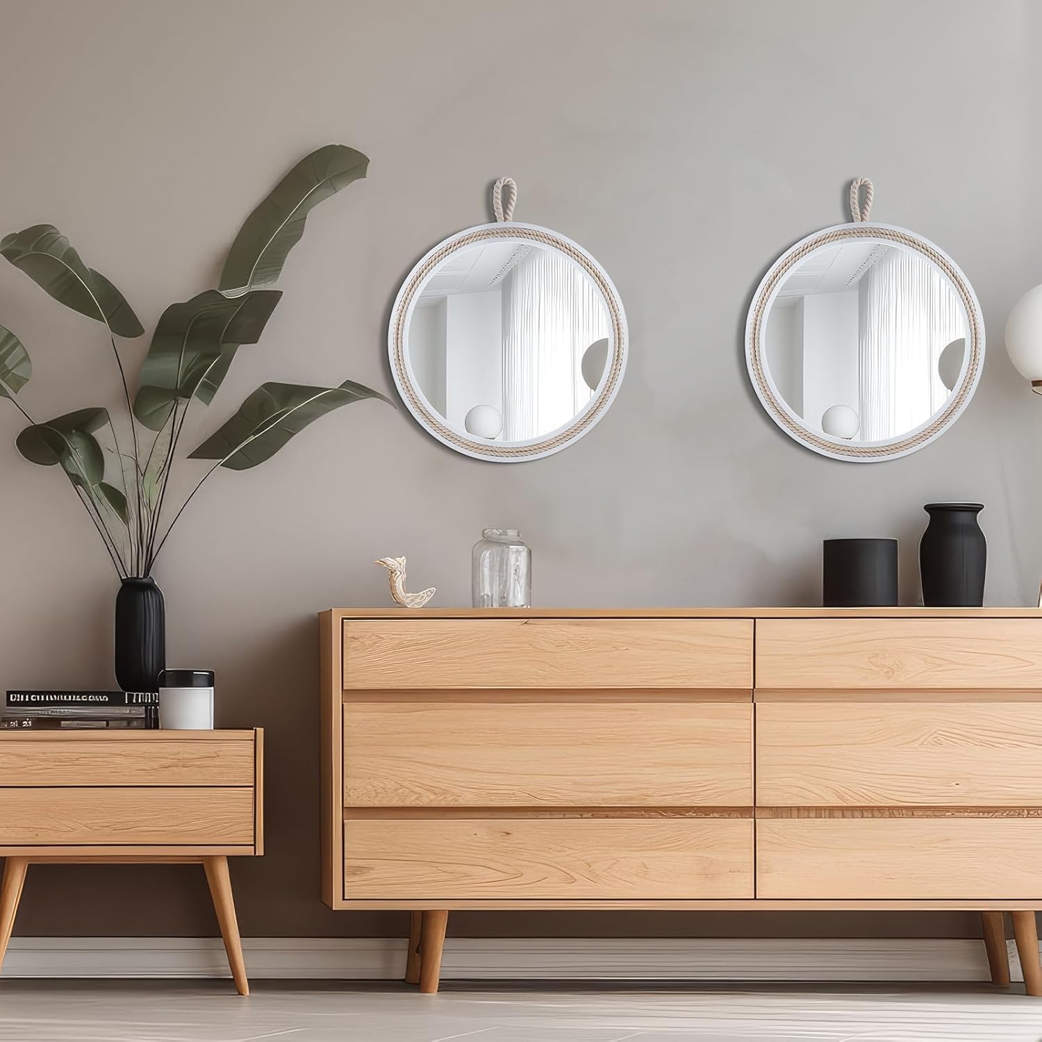 - Coastal Nautical Design for Any Space – This small round wall mirror features a beautiful nautical design with a high-quality wooden frame and stylish cotton rope accents. Ideal for creating a coastal-inspired atmosphere in your living room, bathroom, entryway, or farmhouse decor. Perfect for those looking to add a boho style or beach house feel to their home