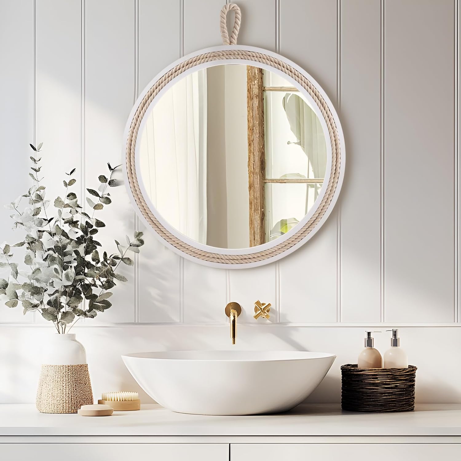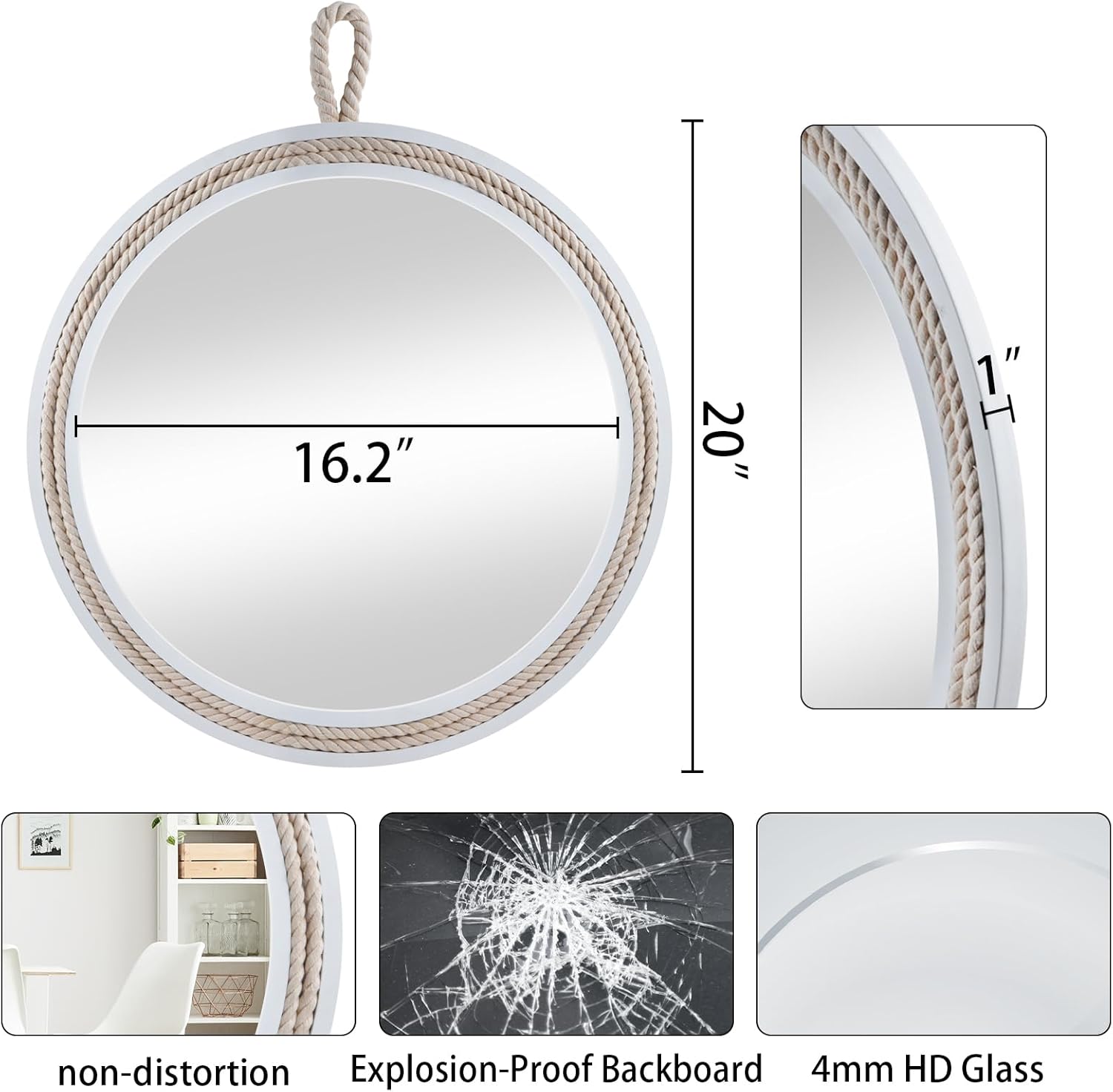 - Coastal Nautical Design for Any Space – This 20-inch round wall mirror features a beautiful nautical design with a high-quality wooden frame and stylish cotton rope accents. Ideal for creating a coastal-inspired atmosphere in your living room, bathroom, entryway, or farmhouse decor. Perfect for those looking to add a boho style or beach house feel to their home