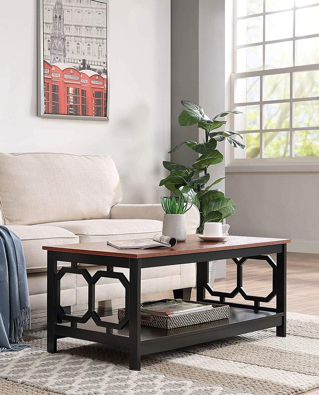 Convenience Concepts Omega Coffee Table, Cherry Top / Black Frame