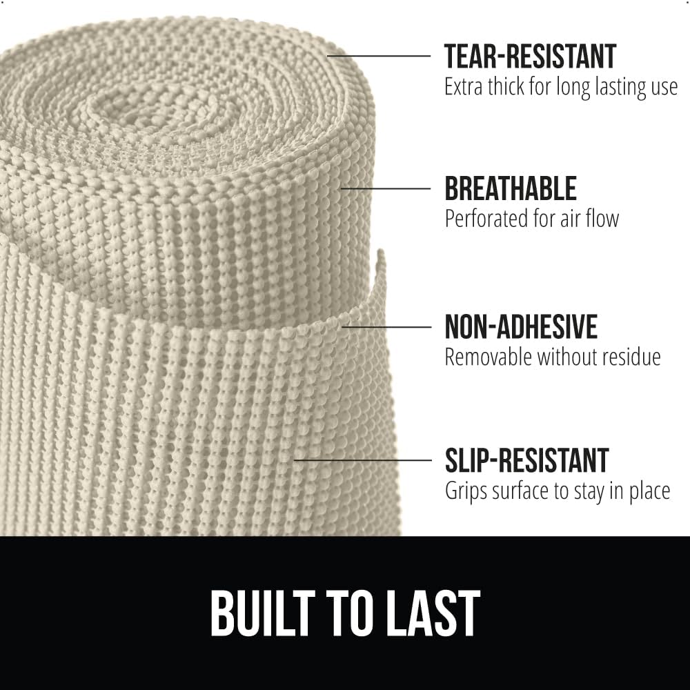 GORILLA GRIP powerGRIP Drawer Shelf and Cabinet Liner, Thick Strong Hold, Non-Adhesive Liners Protect Kitchen Cabinets and Cupboard, Bathroom Drawers, Easy Install, Breathable Mat, 20" x10', Cream