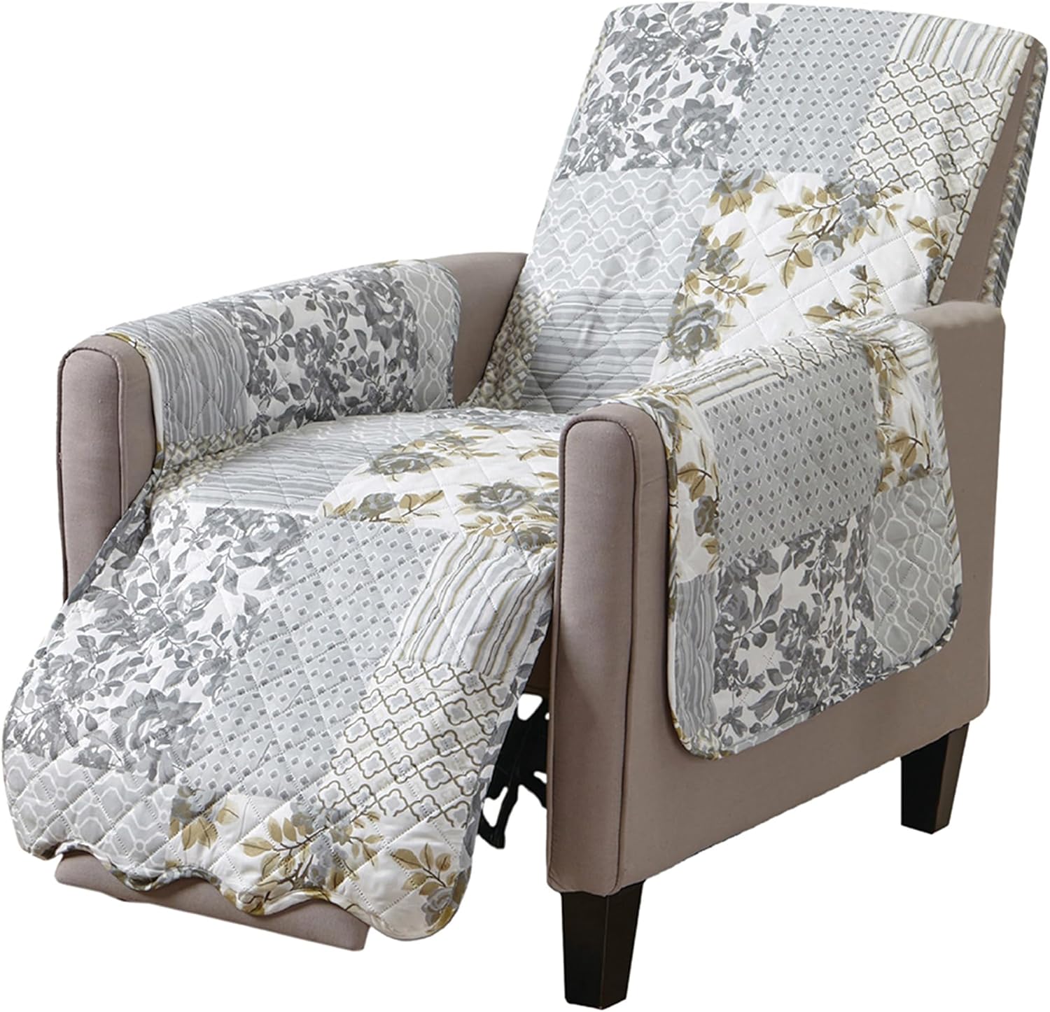 Patchwork Scalloped Printed Furniture Protector Stain Resistant Recliner Cover (Recliner, Grey)