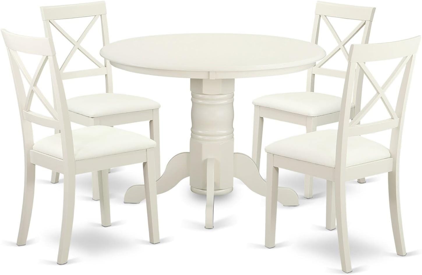 East West Furniture SHBO5-WHI-LC 5 Piece Kitchen Table Set for 4 Includes a Round Dining Room Table with Pedestal and 4 Faux Leather Upholstered Dining Chairs, 42x42 Inch, Linen White