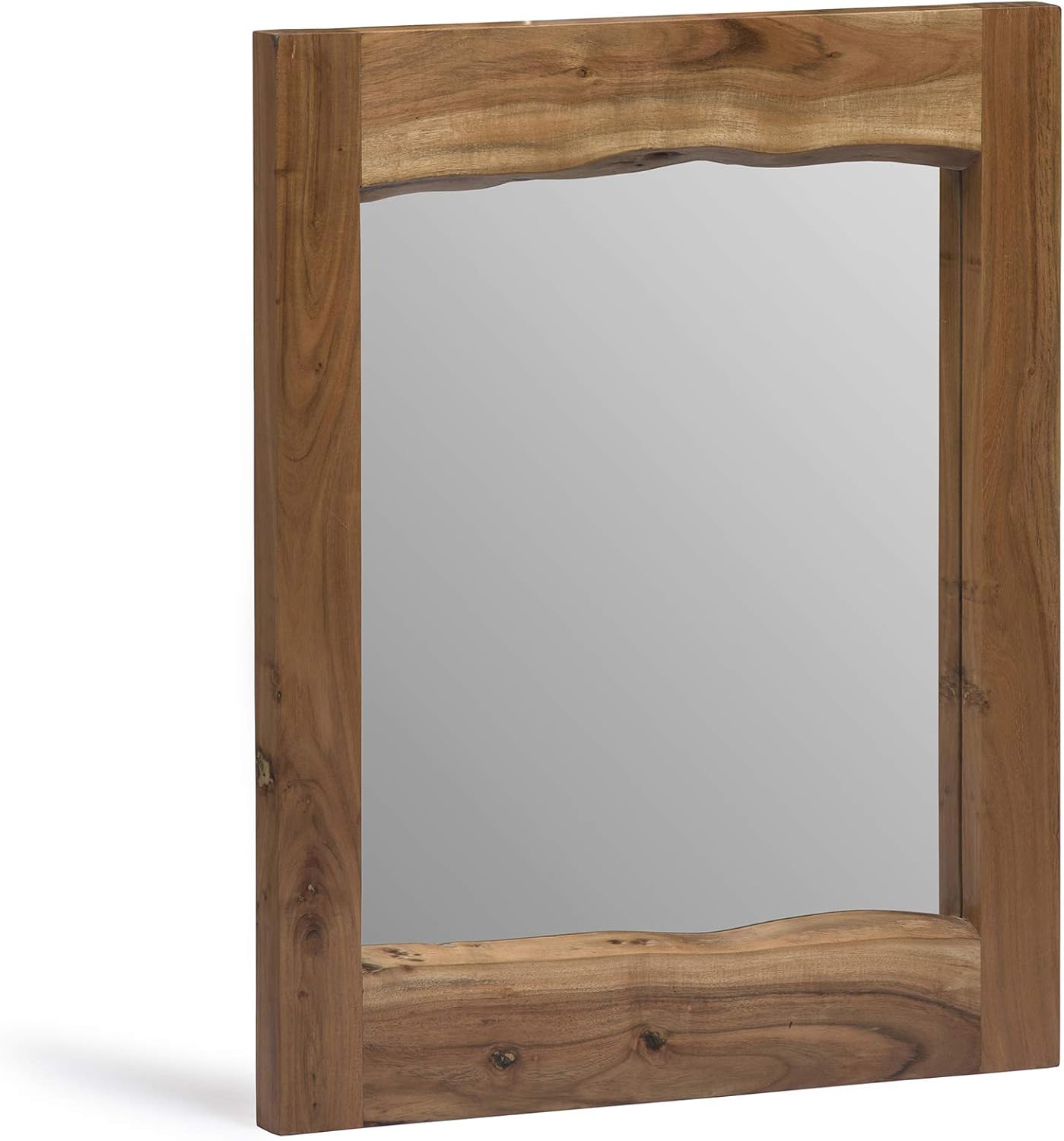 - [Unique Live Edge] Proudly display the natural beauty of handcrafted Acacia wood with this distinctive live edge mirror. Featuring a unique live edge design on the inside of the frame and a square outside edge, this piece brings a touch of nature to your home with subtle imperfections like knots and cracks.