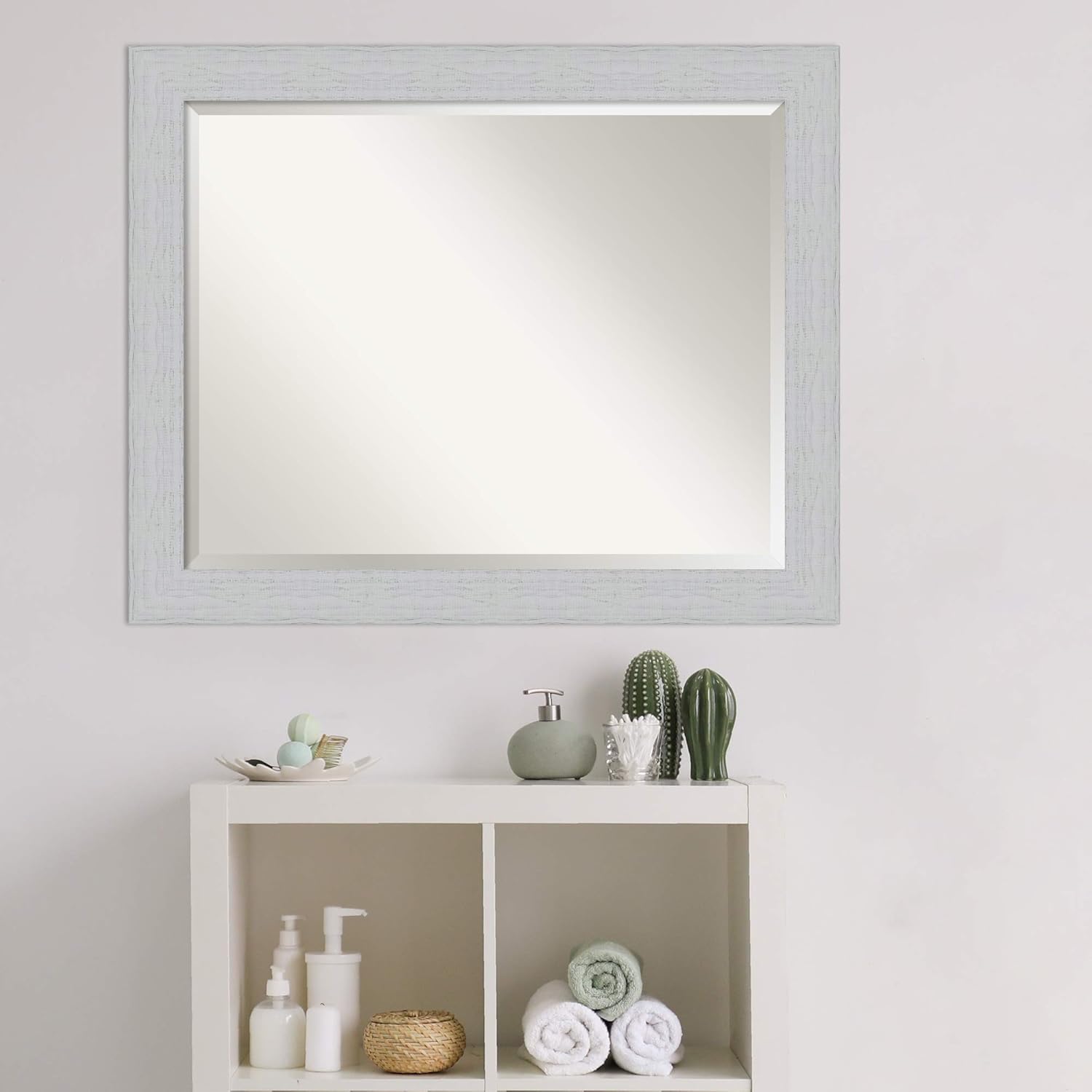 Amanti Art White Bathroom Mirror for Over Sink, 26x32 Shiplap White Rectangle Vanity Mirror, Large Coastal Wood Frame, Hangs Horizonally and Vertically, Bathroom Wall Decor, Beveled Edge from WI, USA