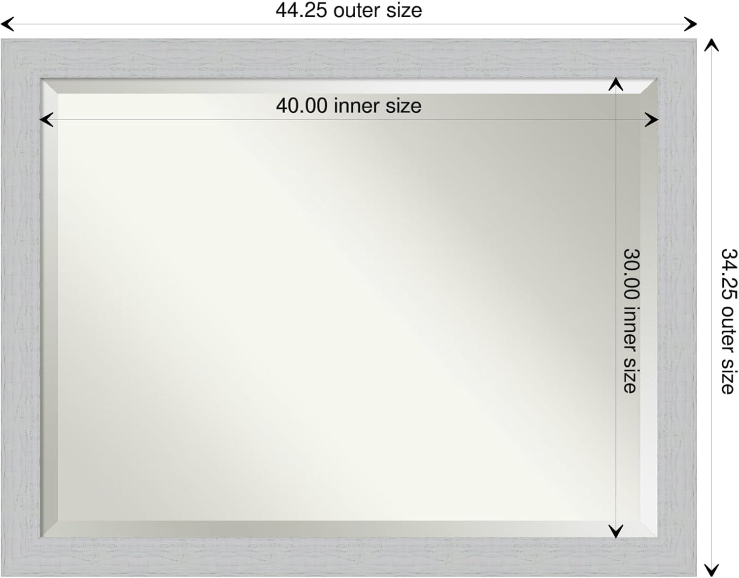 - MIRROR DETAILS: This mirror features premium glass for a clear, undistorted image and is finished with a beveled edge to give the glass a decorative touch. The overall size of this bathroom mirror measures exactly 44.25 x 34.25 inches, including the frame. Its reflective area measures 40 x 30 inches.